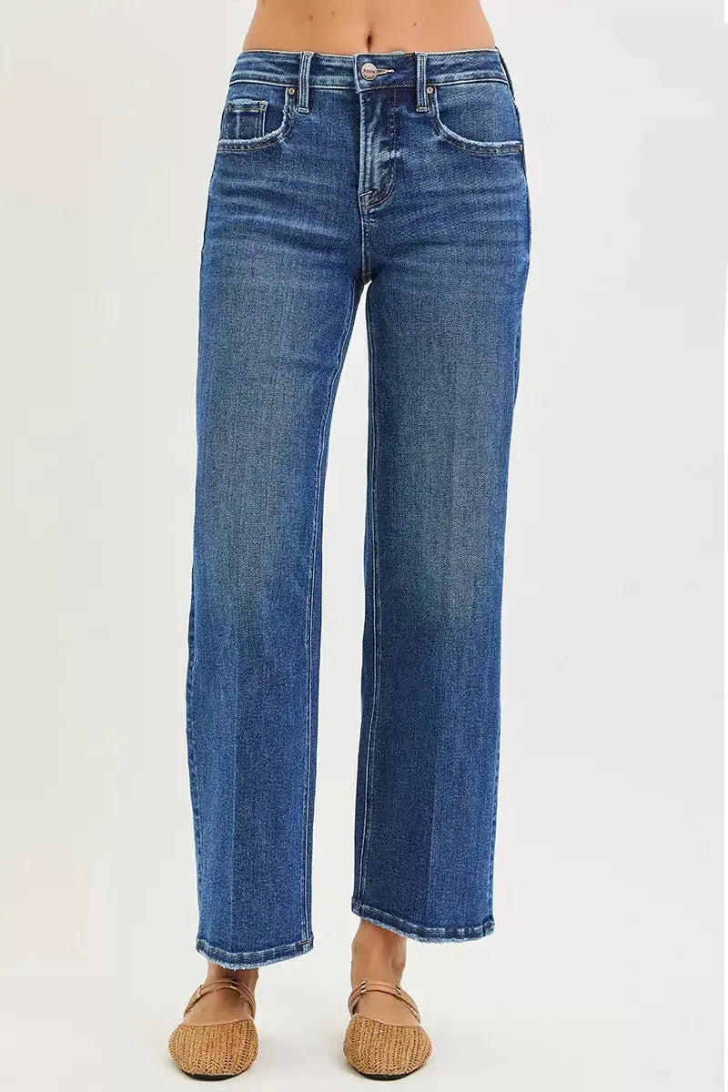 Upgrade your everyday wardrobe with the RISEN Tummy Control High Rise Ankle Straight Jeans with Crease Line, the perfect blend of polished style and modern comfort. These jeans are thoughtfully designed with a high-rise waist and built-in tummy control technology to provide a smooth, streamlined silhouette that flatters every curve.