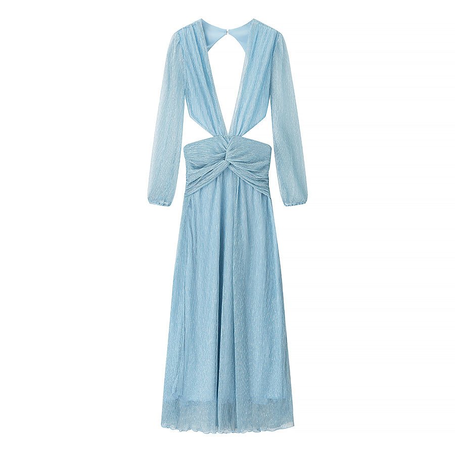 Beach Vacation Sexy Dress Women Summer Cropped Outfit Solid Color Seaside Atmosphere Maxi Dress - Plush Fashion Hub