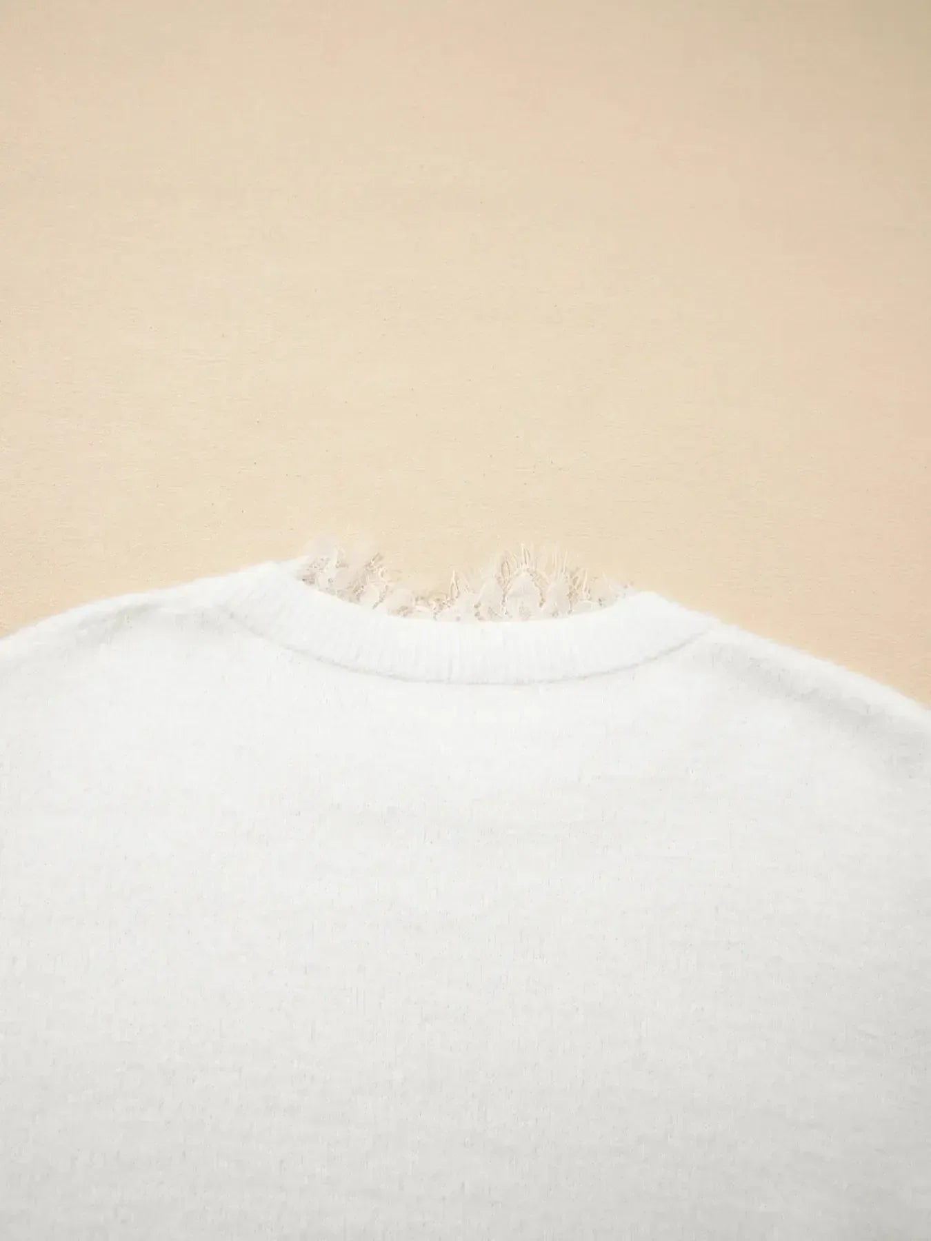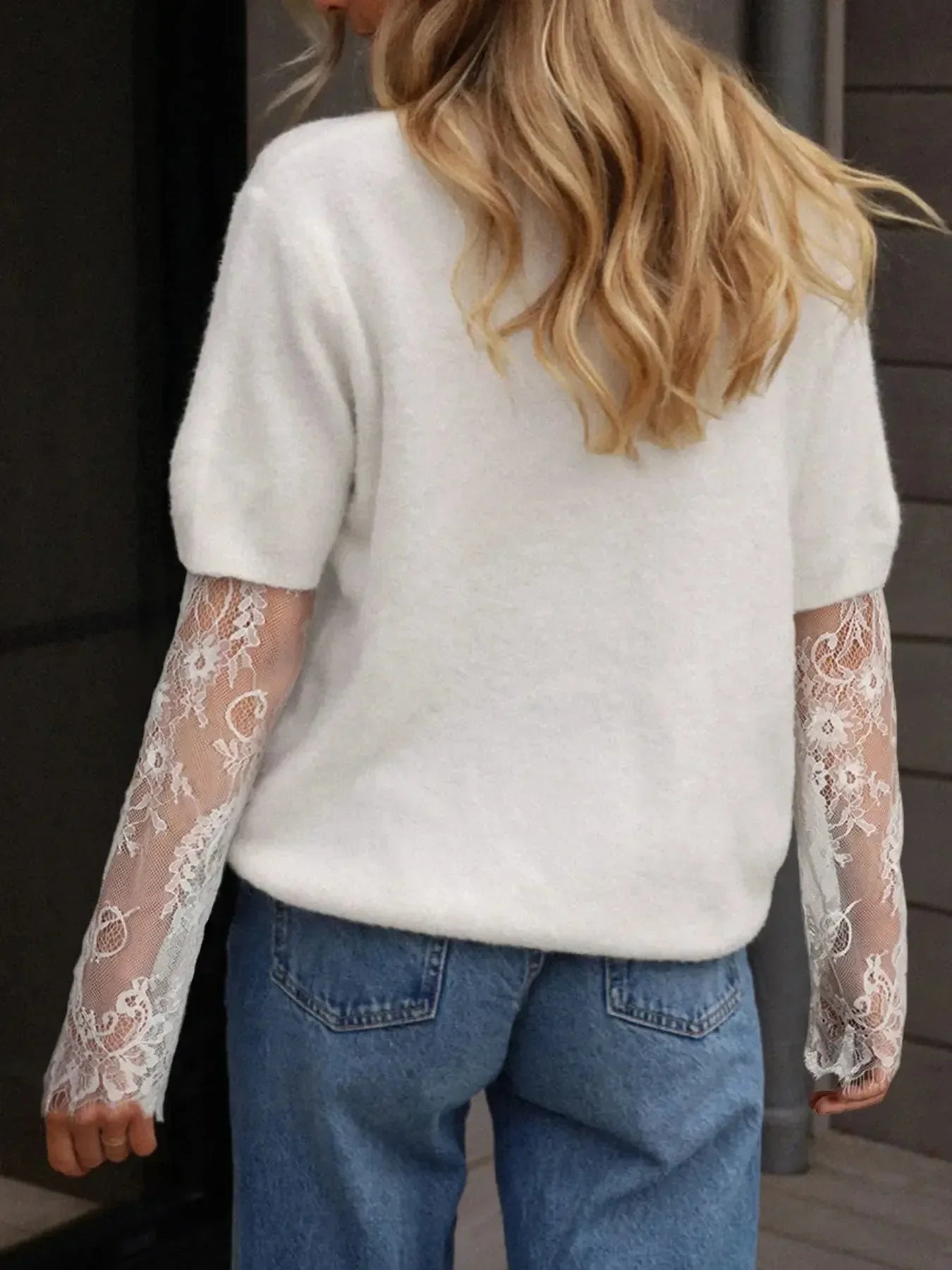 Elevate your seasonal wardrobe with the Lace Sleeve Patchwork Faux Two-piece Fuzzy Sweater, a chic blend of cozy texture and delicate detailing. This piece offers a sophisticated faux two-piece look that effortlessly combines a soft, fuzzy bodice with sheer lace sleeves, perfect for adding a touch of romance to your everyday outfits.
