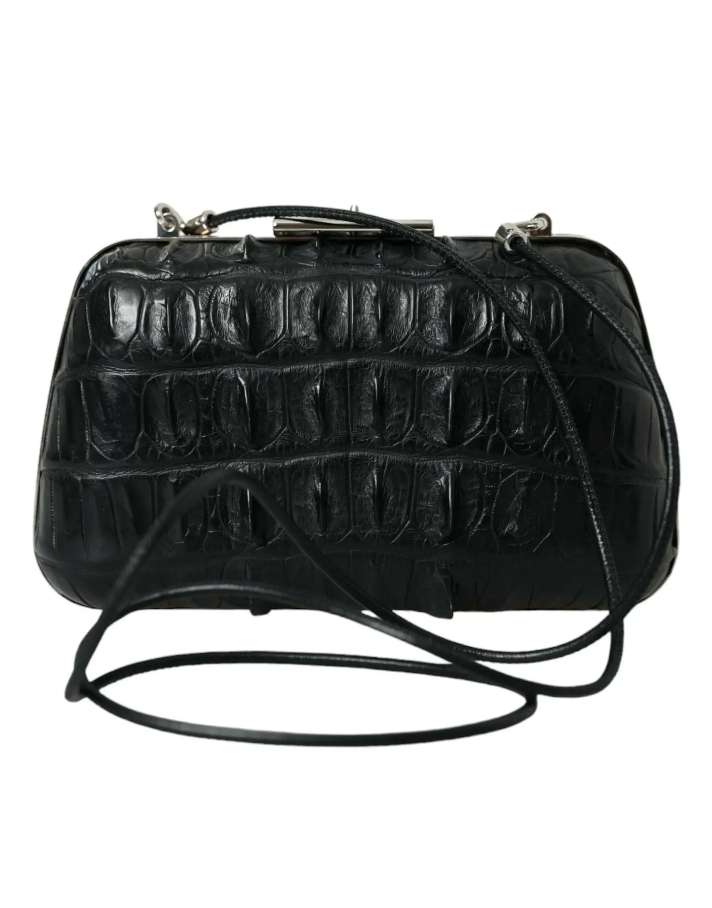 Crafted in Italy with meticulous attention to detail, this bag features a classic black finish accented by polished silver-tone hardware. The compact, boxy design is perfect for keeping your essentials secure while maintaining a clean, minimalist profile. The included slender strap allows for versatile styling, ensuring you stay effortlessly chic throughout the night.