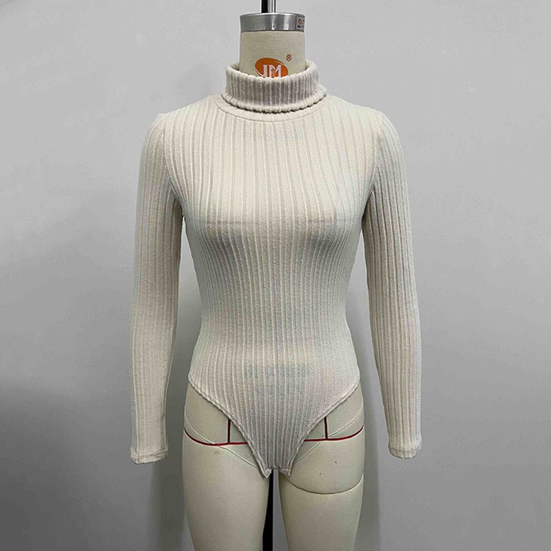 Women Wear Source Knitted Long Sleeve Turtleneck Slim Fit Jumpsuit Bodysuit - Plush Fashion Hub