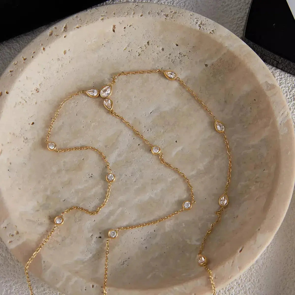 Elevate your everyday aesthetic with the 18K Gold-Plated Zircon Chain Necklace, a radiant piece designed to bring a touch of effortless sophistication to any outfit. Combining timeless charm with contemporary brilliance, this necklace is crafted to be your new go-to accessory for everything from casual brunch outings to elegant evening affairs.