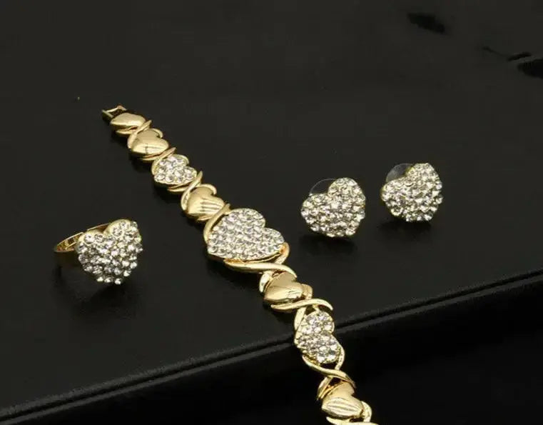The 18K Gold Heart-Shaped Jewelry Suit brings a touch of romantic elegance to your personal collection. This beautifully matched set, featuring a delicate necklace and coordinating earrings, is designed to capture the light and provide a warm, radiant glow to any ensemble.