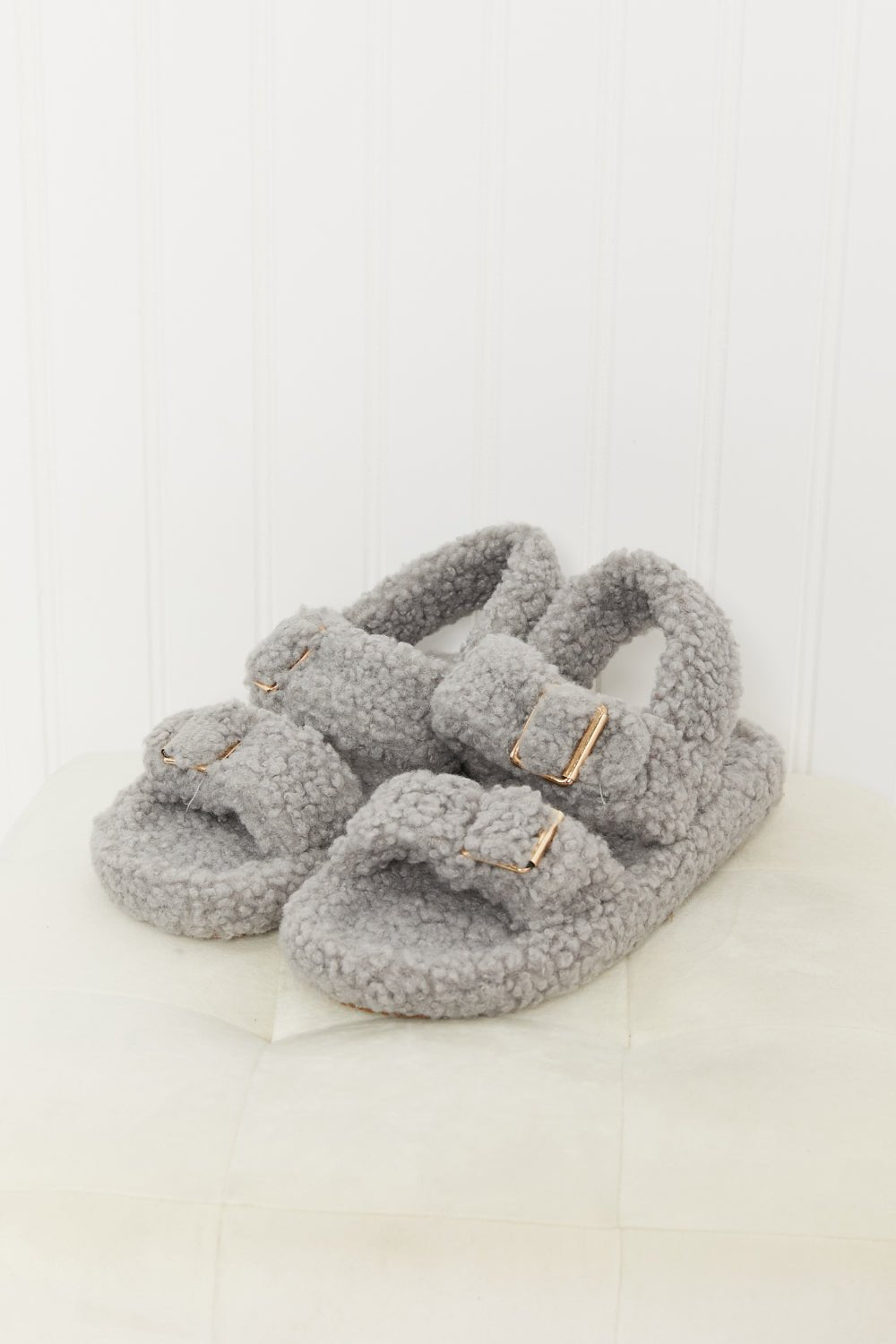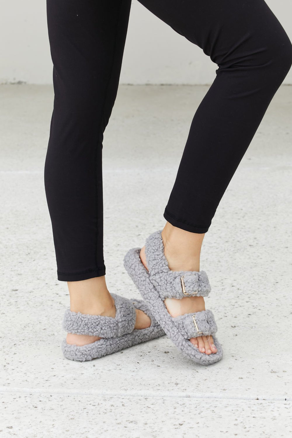 These faux fur sandals are perfect for casual wear. The open-toe design and buckles on the front make this shoe easy to slip on and off. Plus, they're so adorable!