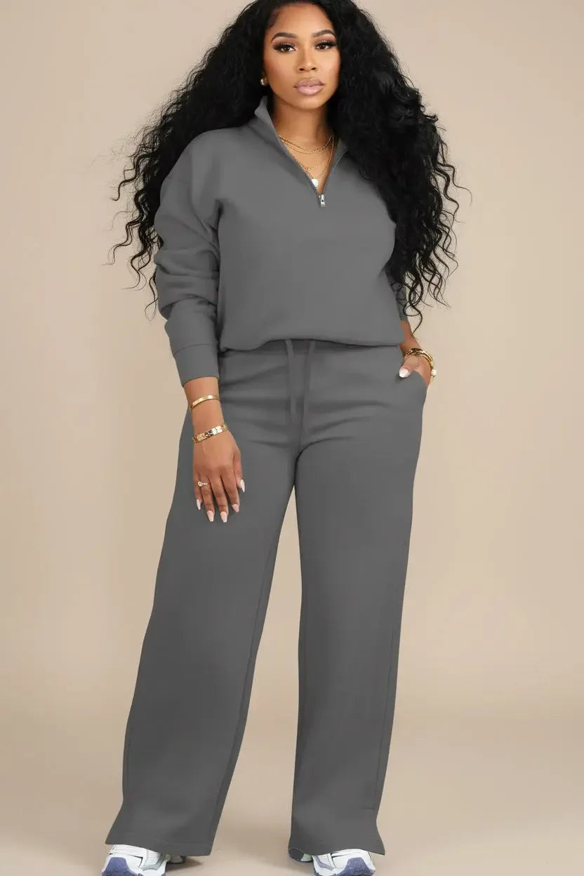Crafted for versatility, the set features a soft, breathable fabric blend that moves with you. The structured half-zip top provides a clean, contemporary look, while the wide-leg bottoms offer a flattering, airy fit that complements any body type. Whether you are catching a flight or enjoying a casual weekend, this set ensures you stay comfortable and effortlessly chic throughout the day.