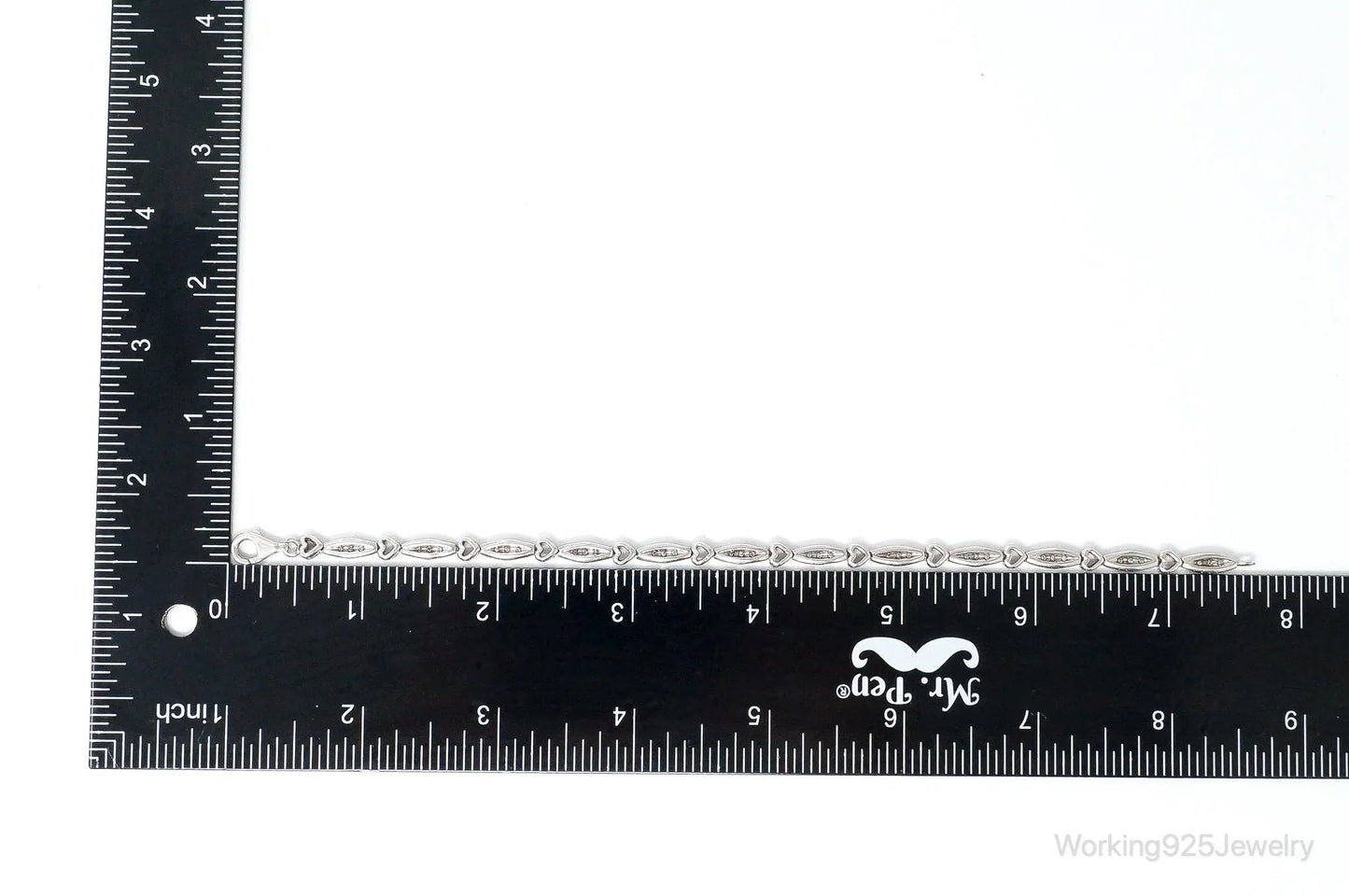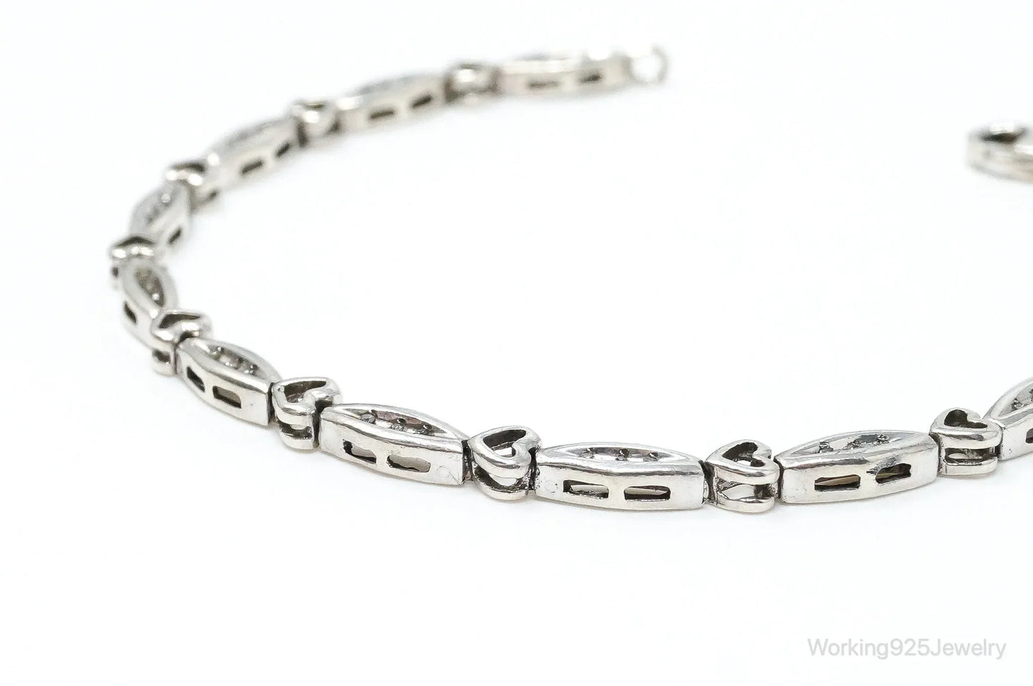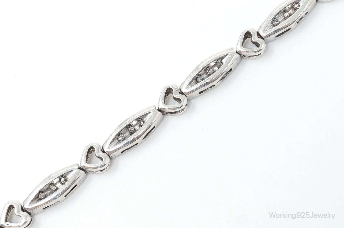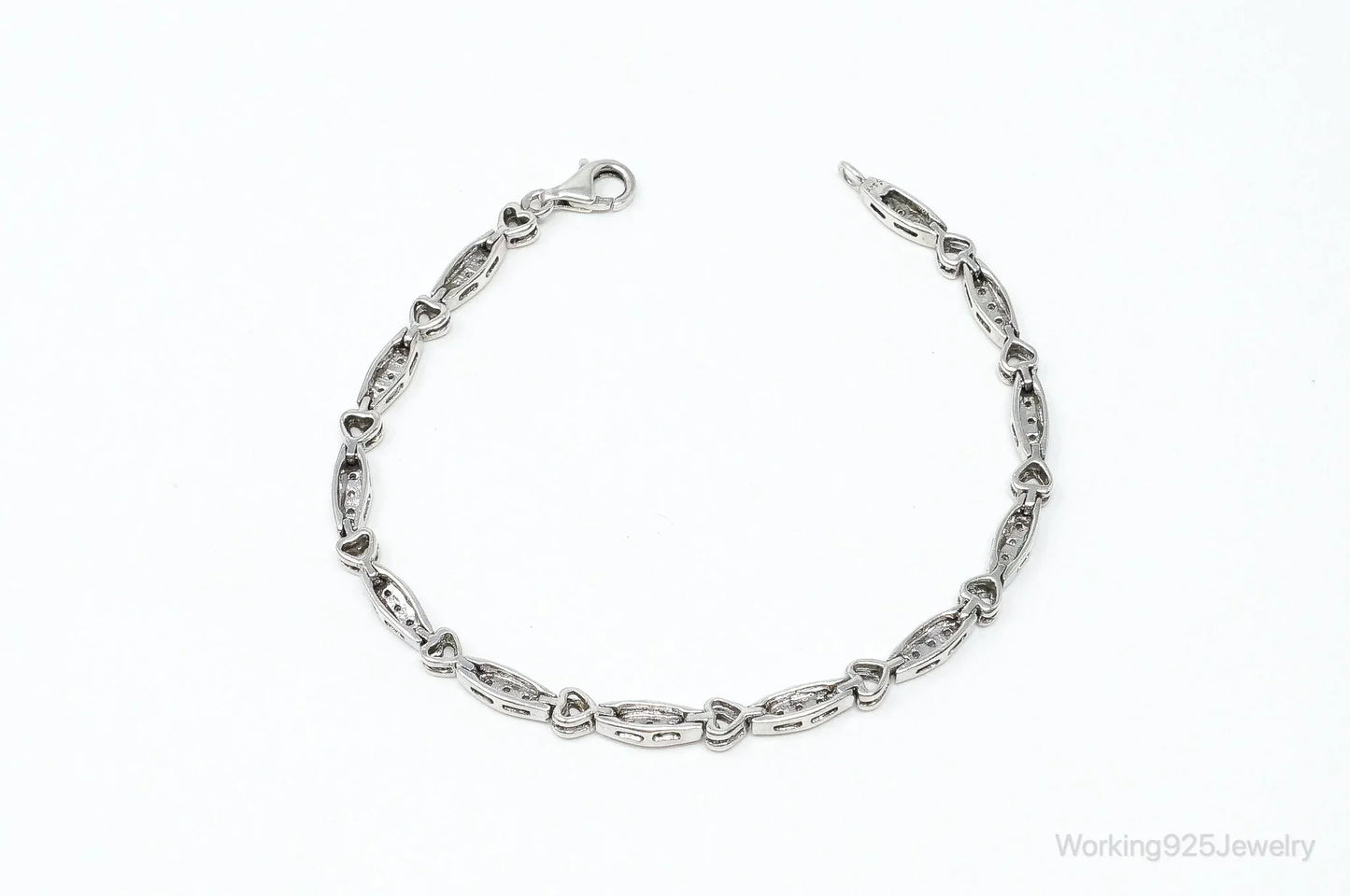 Vintage Diamonds Linked Hearts Sterling Silver Bracelet Working 925 Jewelry