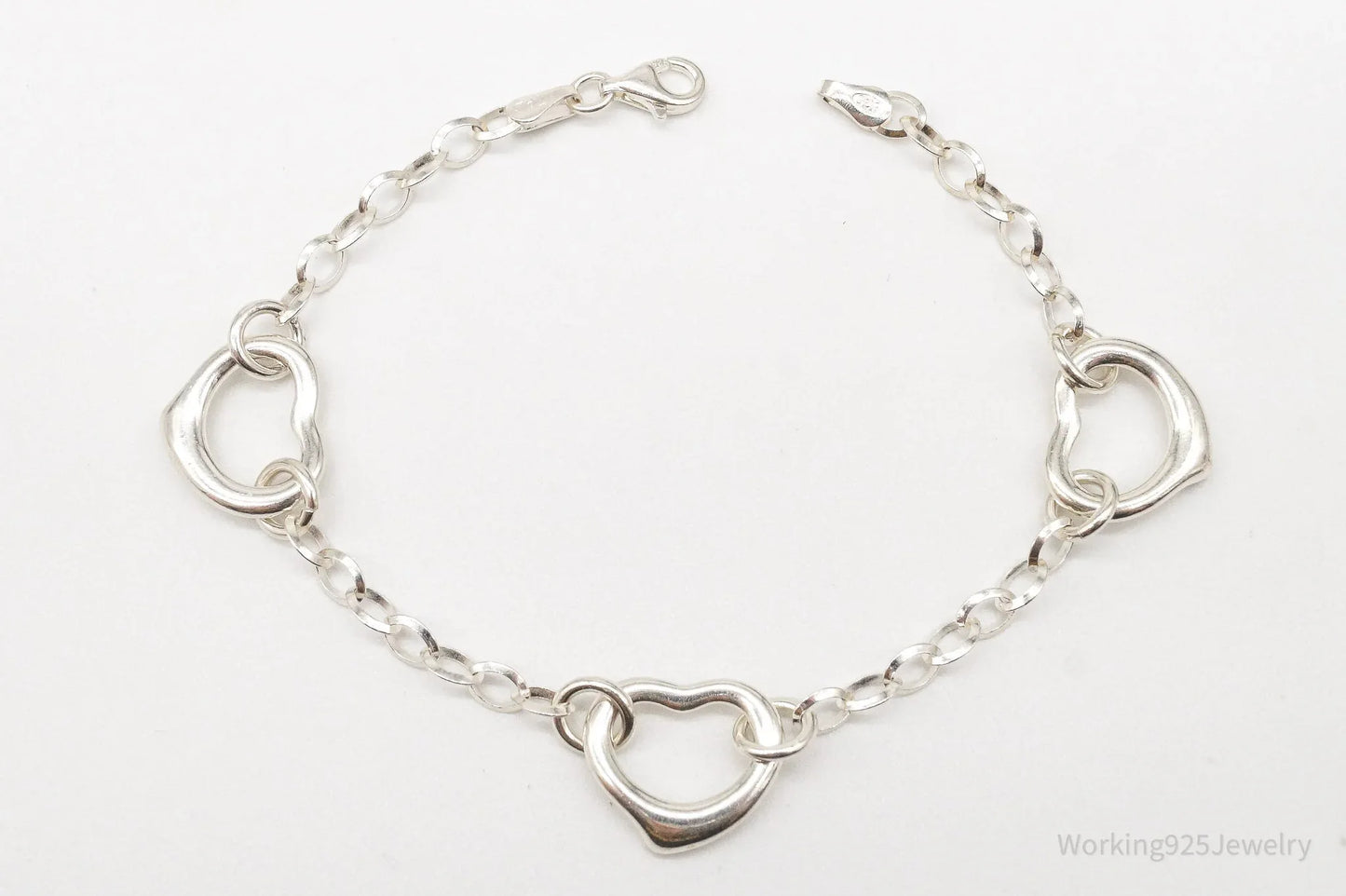 Vintage Italian Hearts Chain Link Sterling Silver Bracelet Working 925 Jewelry