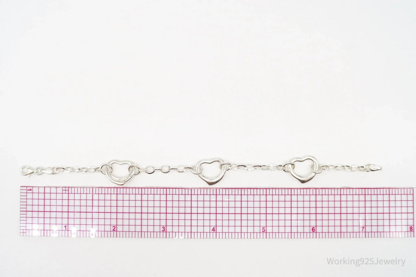 Vintage Italian Hearts Chain Link Sterling Silver Bracelet