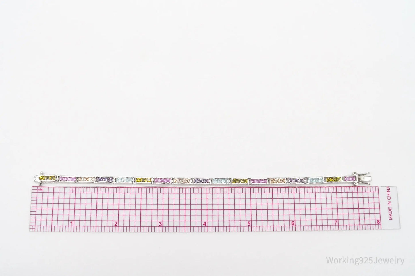 Vintage Designer FAS Multi Gemstone Sterling Silver Plated Bracelet