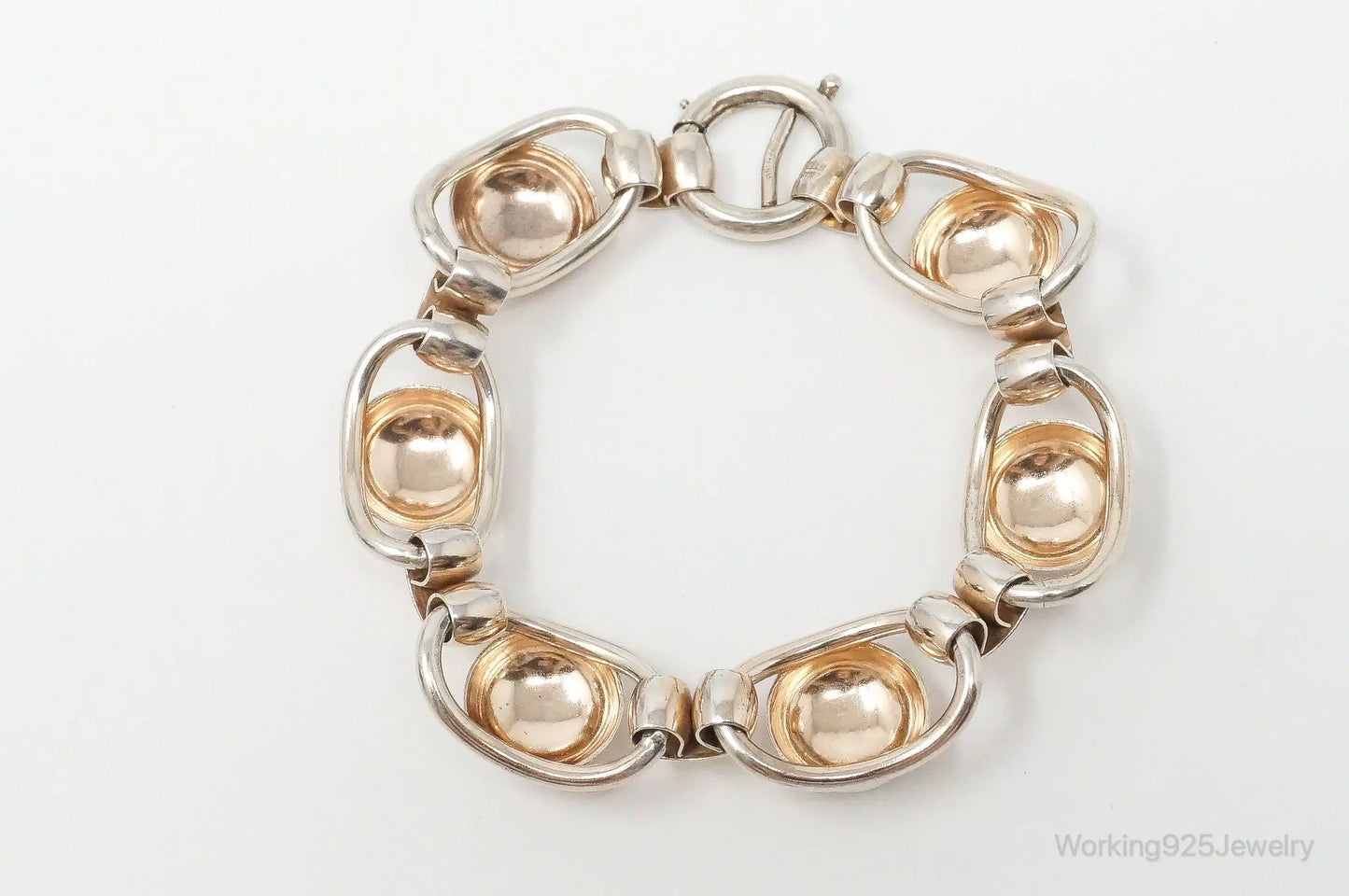 Vintage Designer Napier Modern Large Links Gold Tone Sterling Silver Bracelet