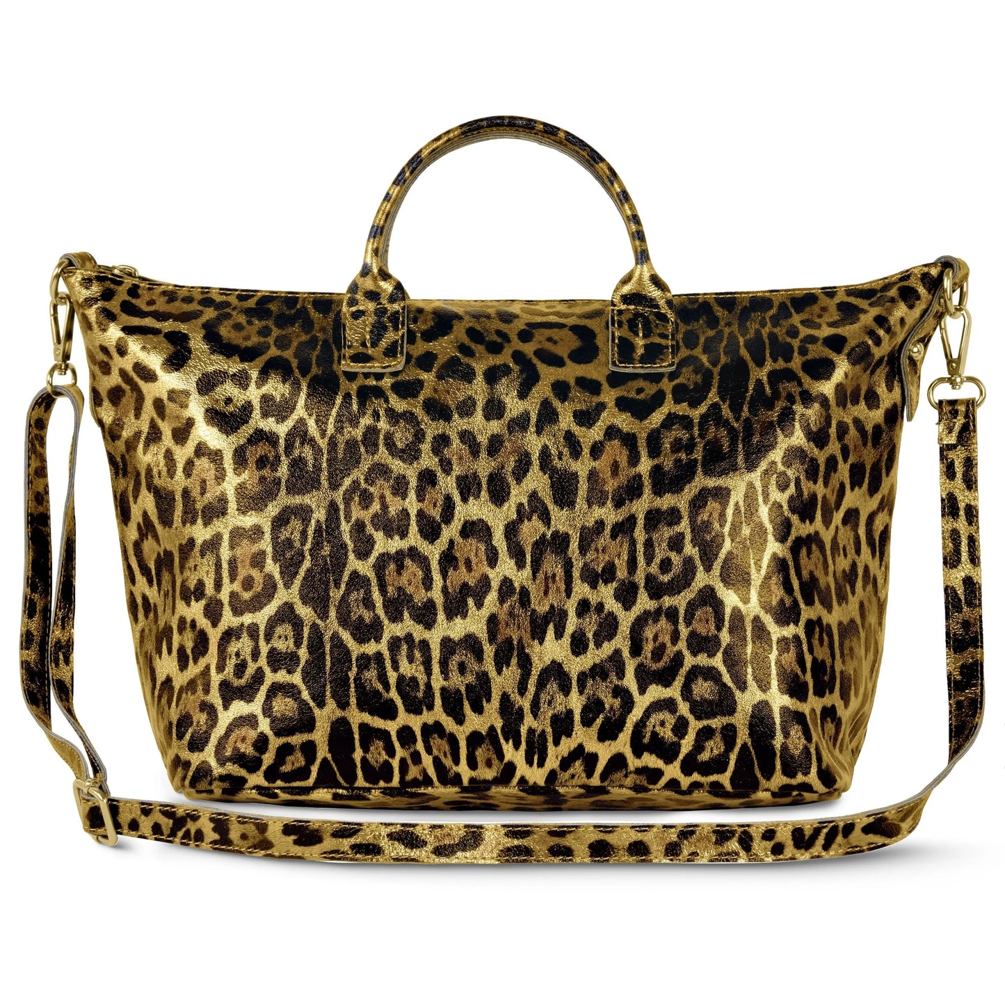 Leopard Metallic Suede Leather Top-Handle Bag TAKEASY