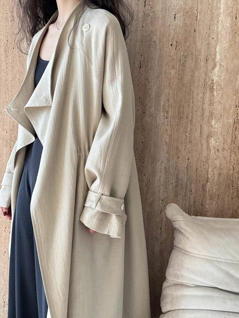 Knee-length Drawstring Linen Windbreaker Plush Fashion Hub