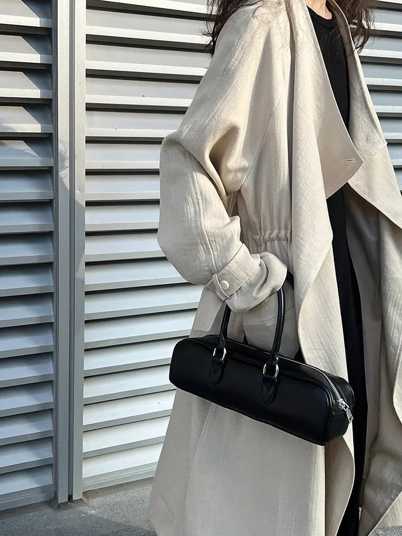 Knee-length Drawstring Linen Windbreaker