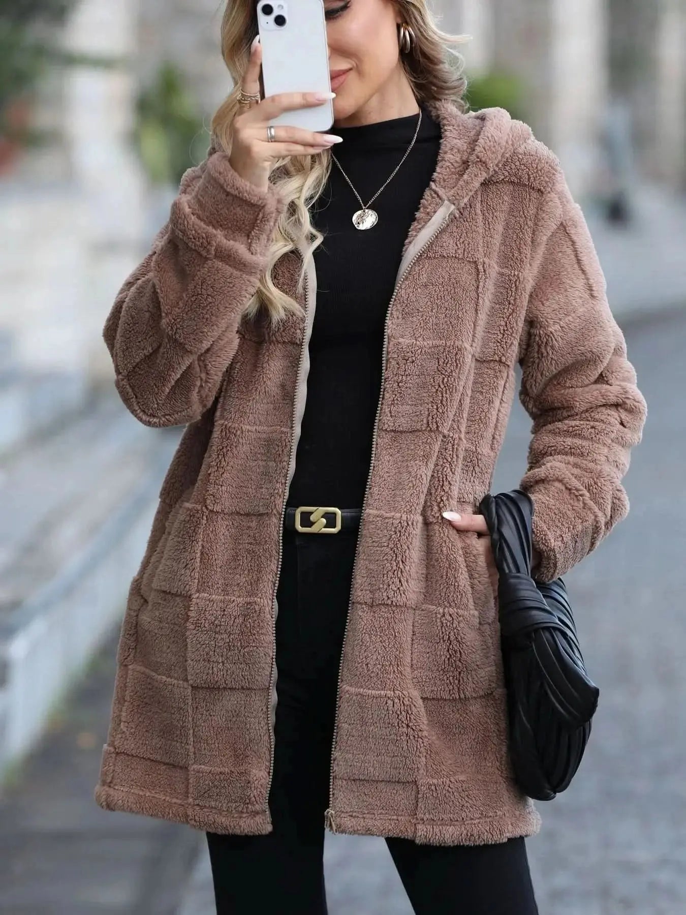 Oversized Fleece Zip Up Hooded Outerwear With Pockets Gilded Glamour Shop