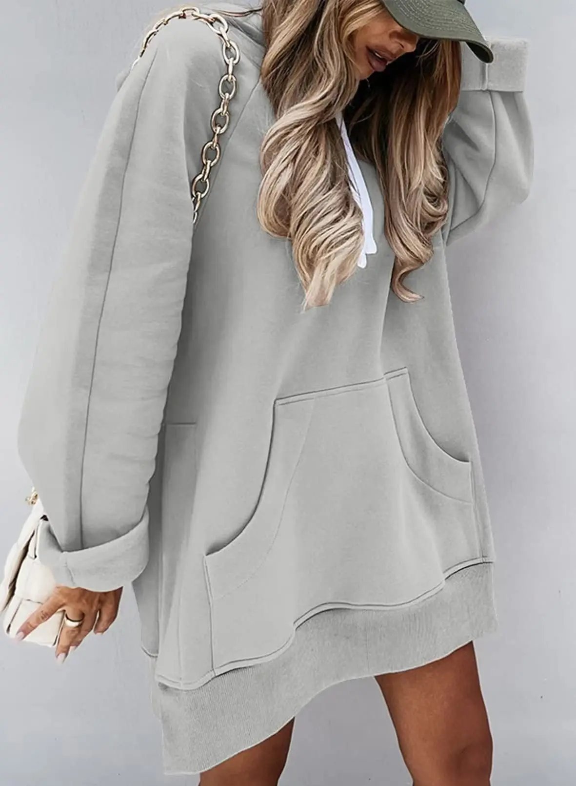 Women's Solid Color Hooded Mid-length Sweatshirt