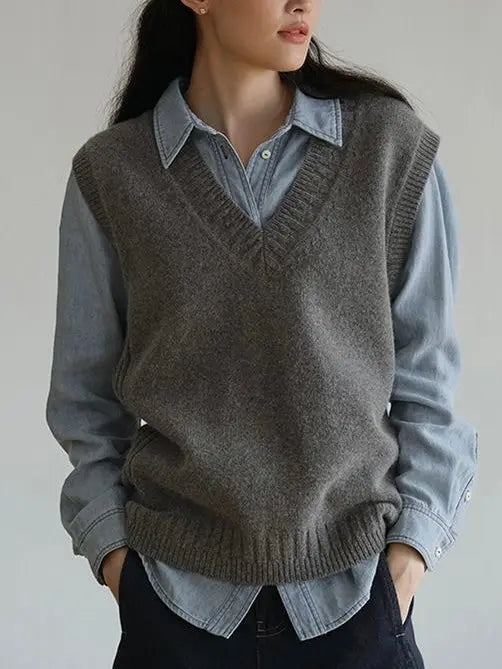 Indulge in the luxurious comfort and style of our Sleeveless Knitted Vest. This sophisticated piece features a sleeveless design for added versatility and a knitted texture for a touch of elegance. Perfect for layering or wearing on its own, it's the perfect addition to your wardrobe for effortless and chic looks.