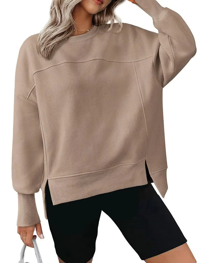 That’s why the Autumn And Winter Round Neck Long Sleeve Split Casual Loose Sweatshirt is the solution you've been searching for. This activewear essential blends cozy warmth with trendy street fashion, so you stay comfortable and look great, no matter where the season takes you.