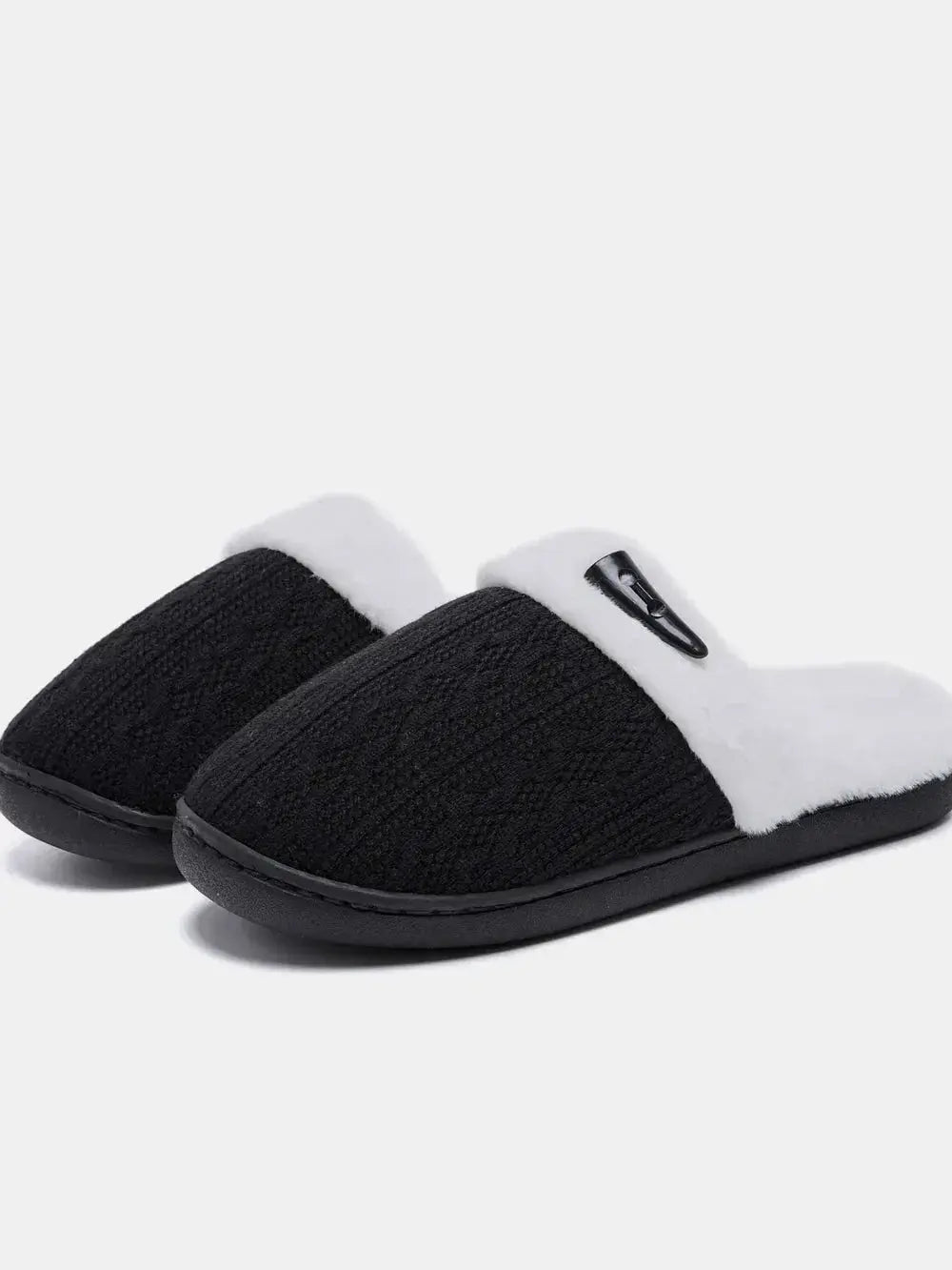 Horn Buckle Furry Texture Flat Slippers - Plush Fashion Hub
