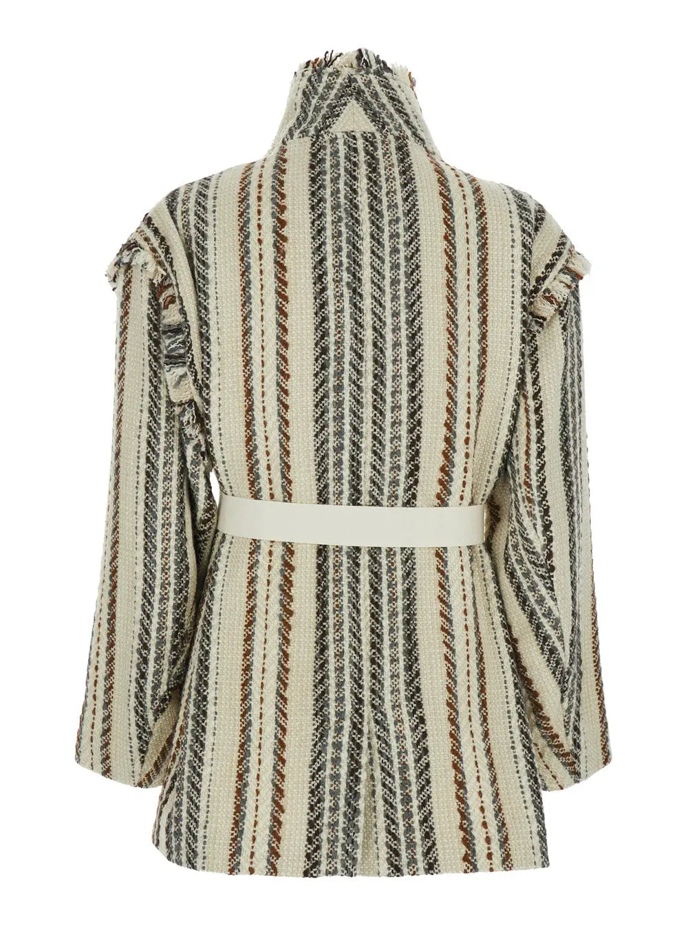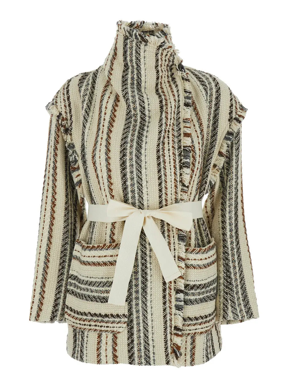 Isabel Marant Etoile Women 'Illisa' Beige High Neck Cardigan With Fringed Details And All-Over Striped Motif In Cotton And Wool Blend Woman Luosophy