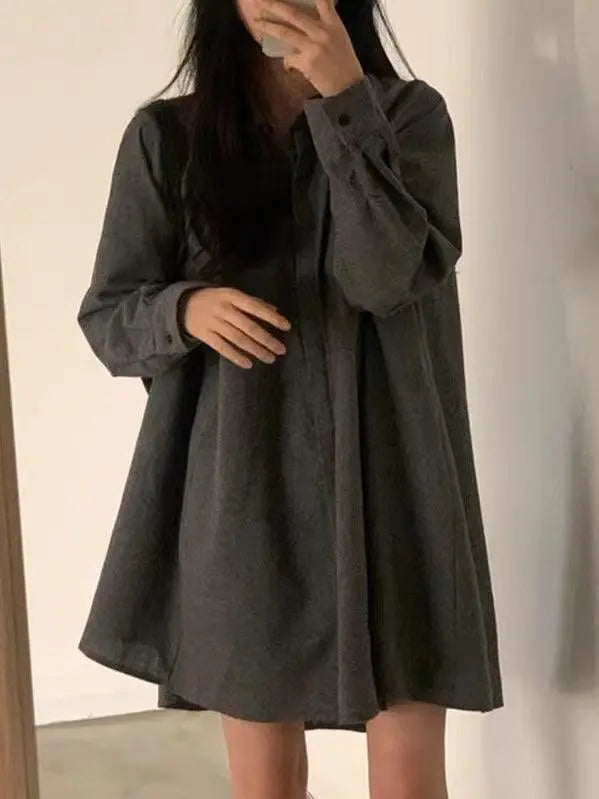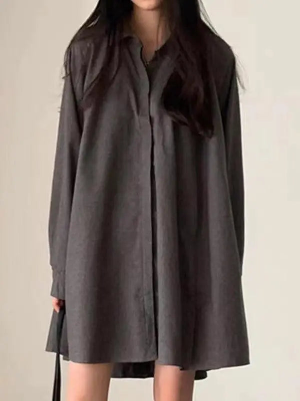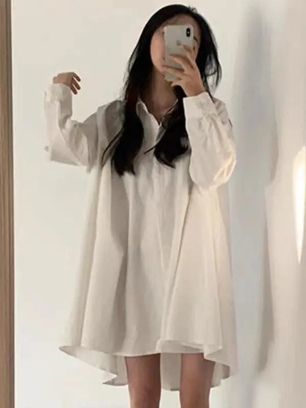 This Loose A-Line Lapel Long Sleeve Shirt brings modern sophistication to your wardrobe. Featuring refined pleating details, a waist-cinching design, and wide statement sleeves, this shirt embodies the season's most coveted elements in premium cotton.