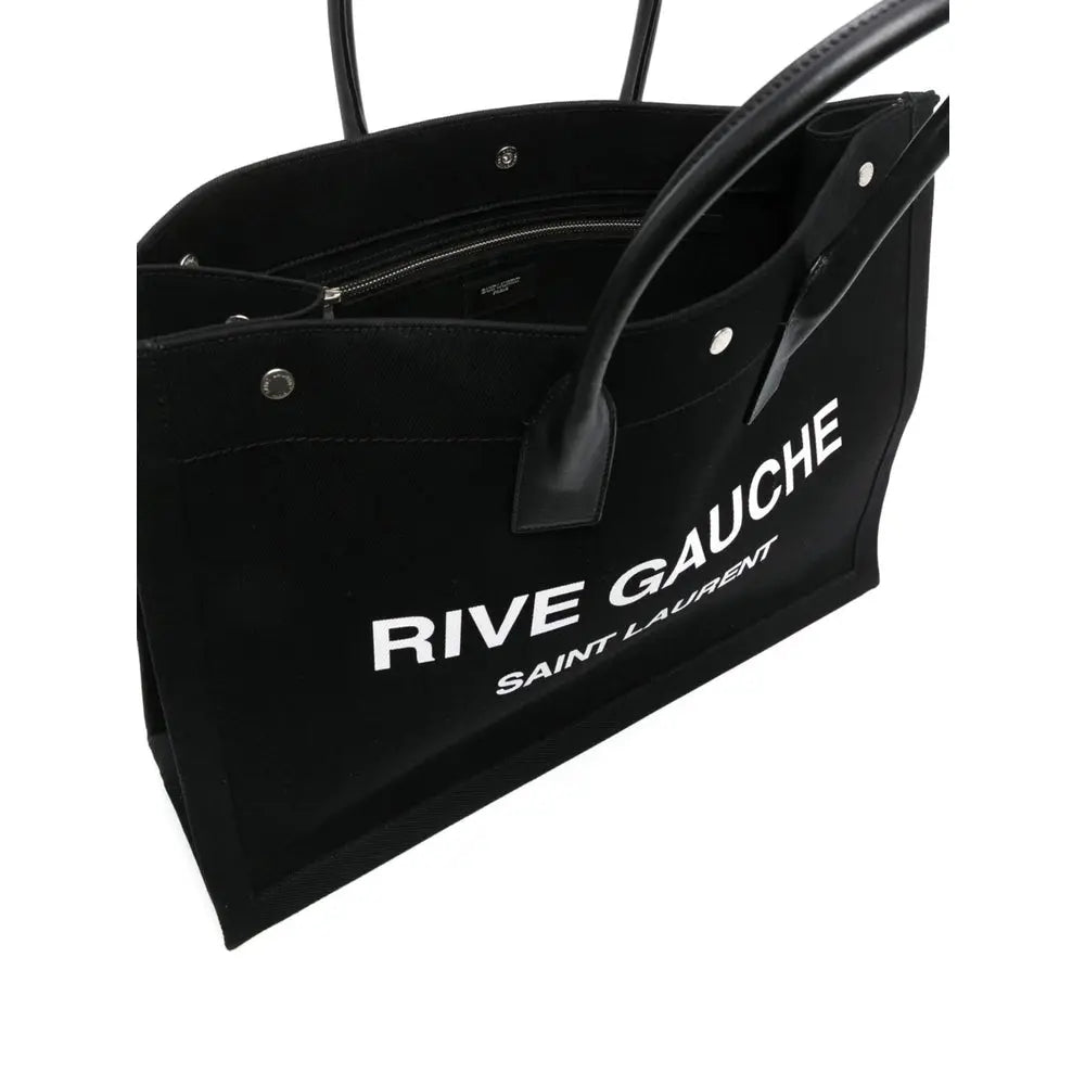 Regular price $1,178.00 USDblack/white canvas leather trim logo print to the front two rolled top handles press-stud fastening main compartment internal zip-fastening pocket This piece comes complete with a protective dust bag.