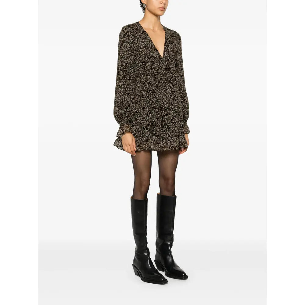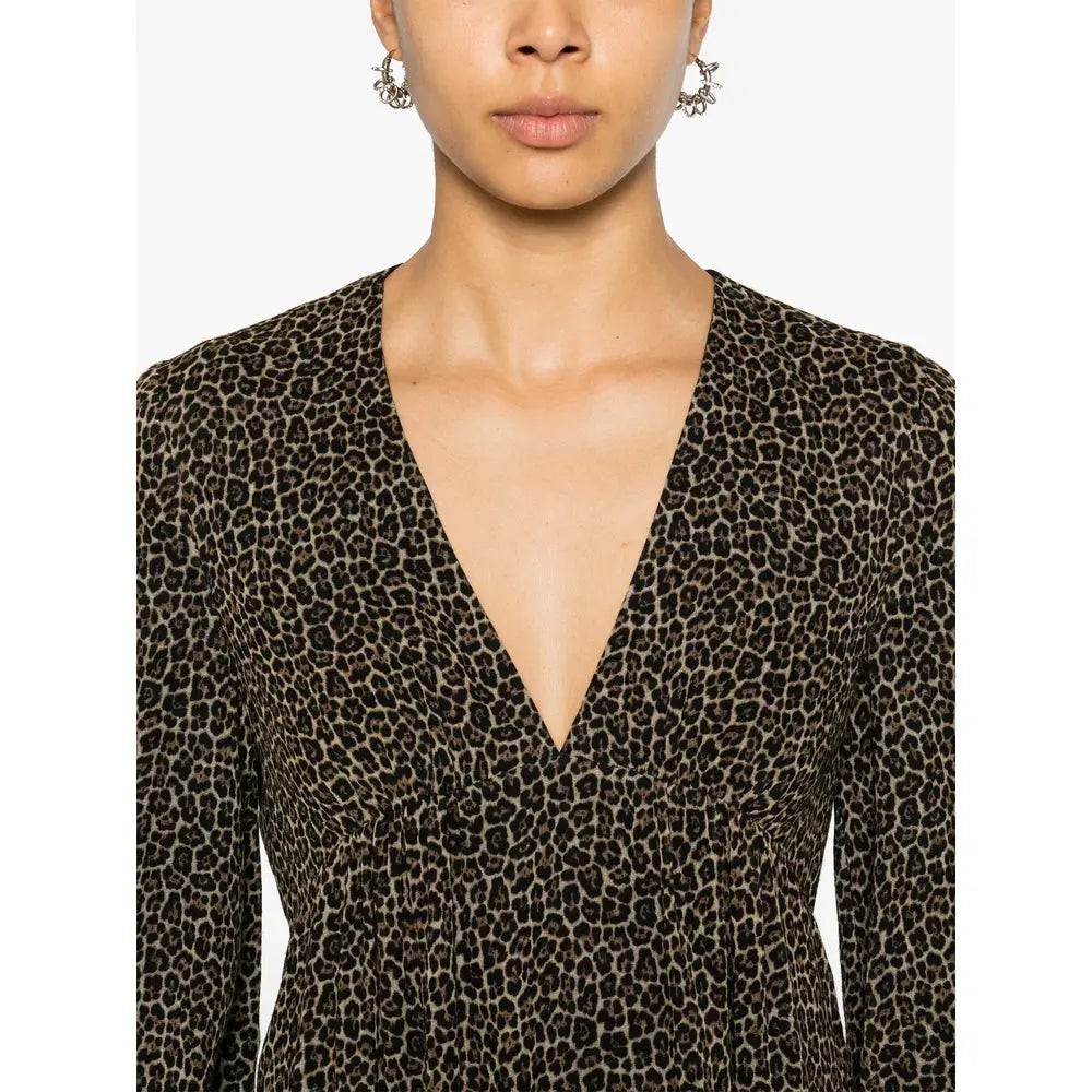 Regular price $956.00 USDbrown wool/silk all-over leopard print V-neck long sleeves buttoned cuffs flared hem rear zip fastening silk lining