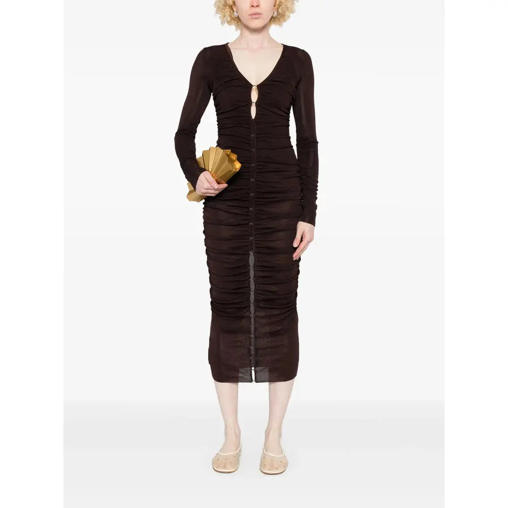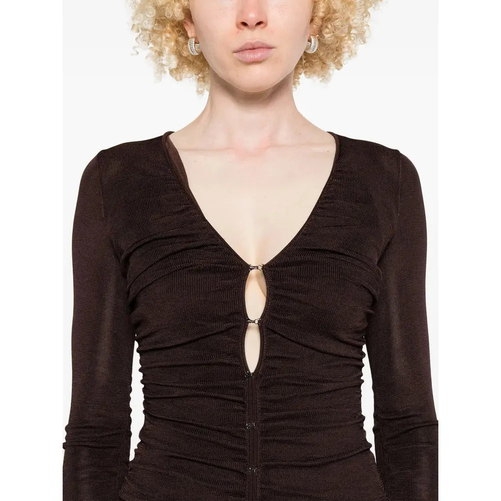 Regular price $461.00 USDcoffee brown front hook and eye fastening cut-out detailing V-neck long sleeves