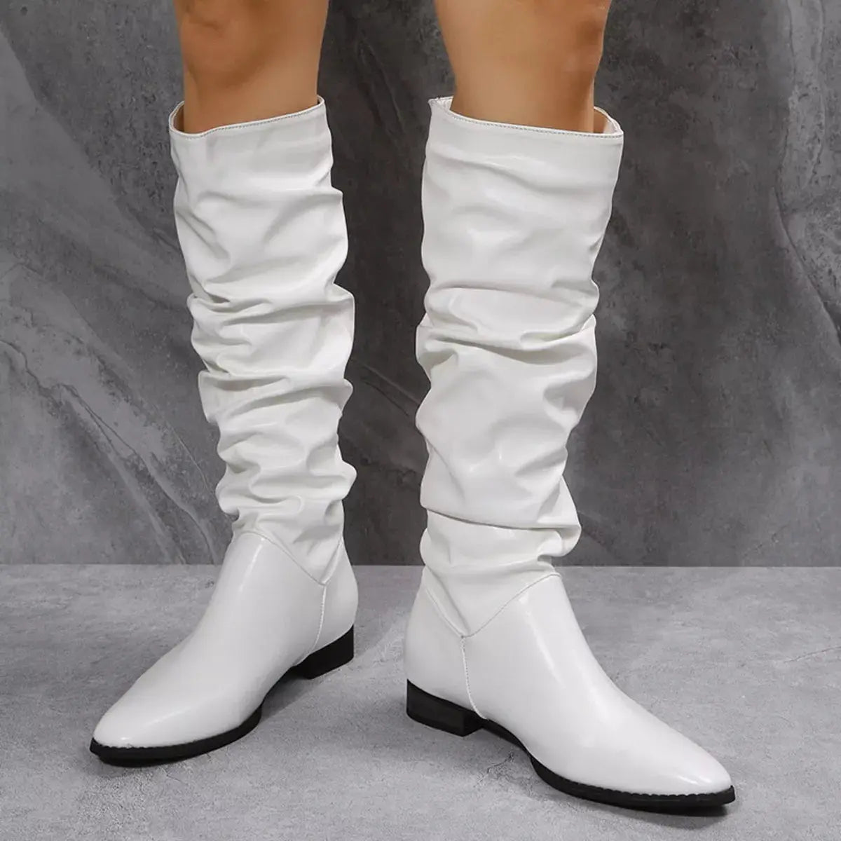 Slouchy Vegan Leather Block Heel Boots - Effortless Cool