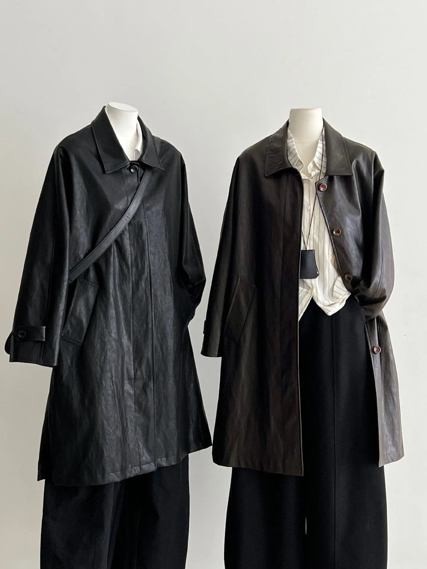 Vintage PU Lapel Leather Mid-length Windbreaker Jacket