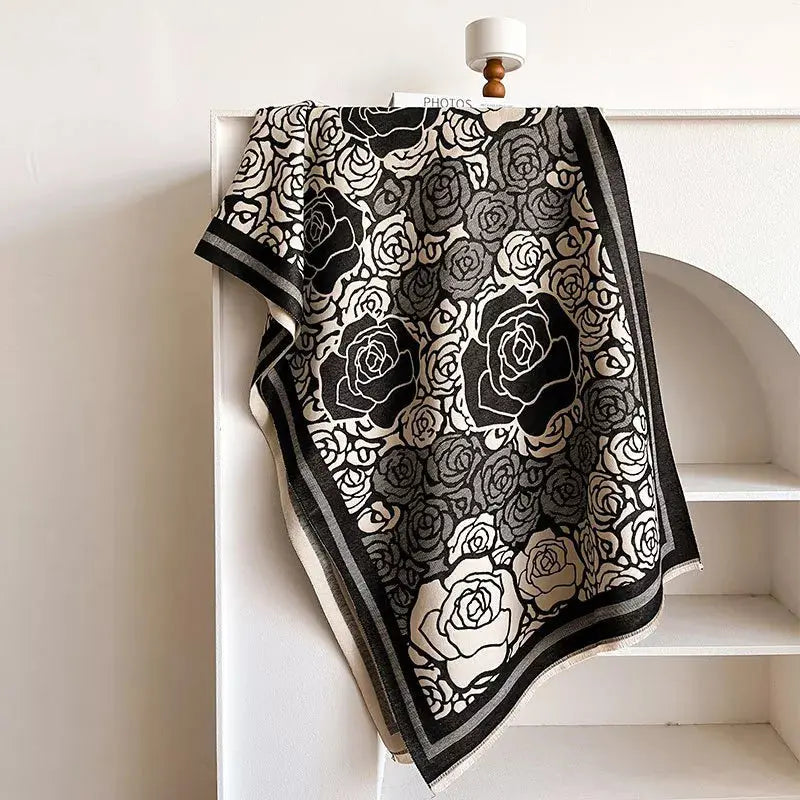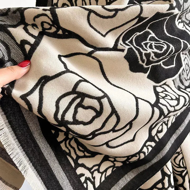 Rose Pattern Fringe Scarf - Luxe Polyester Winter Wrap