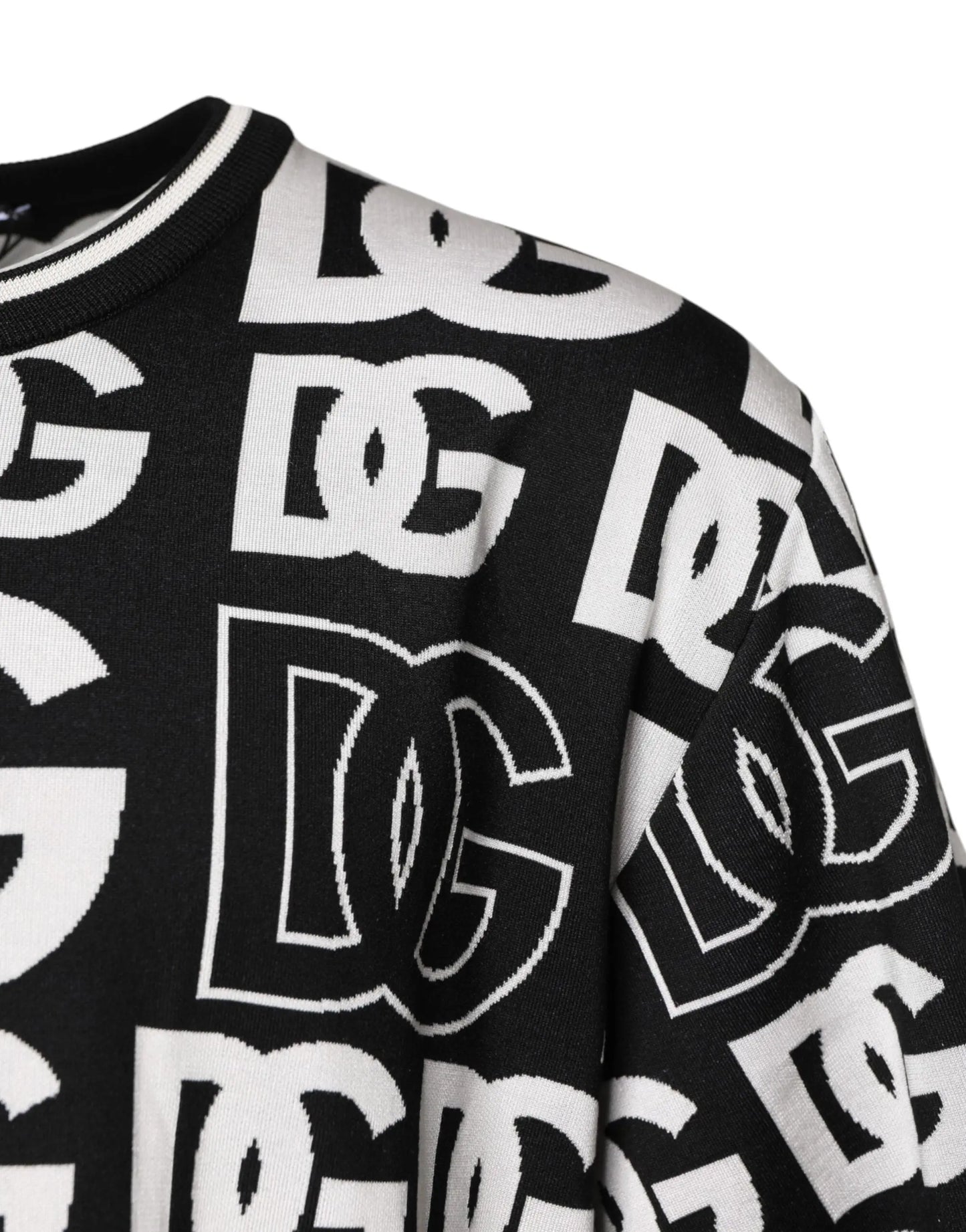 Dolce & Gabbana Black White Silk Knit DG Print T-shirt Plush Fashion Hub