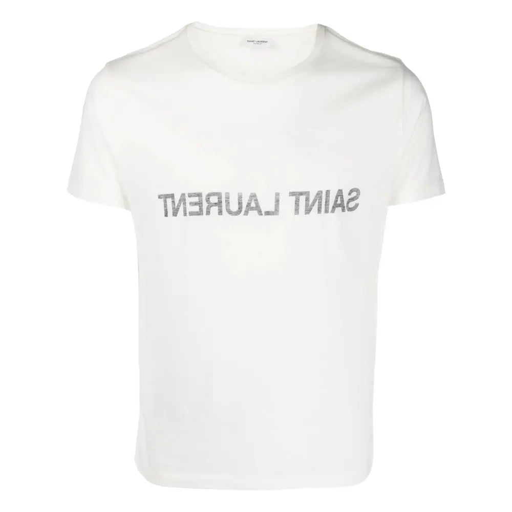 Prix régulier $436.00 USDwhite cotton crew neck short sleeves logo print to the front logo print to the rear raw edge straight hem