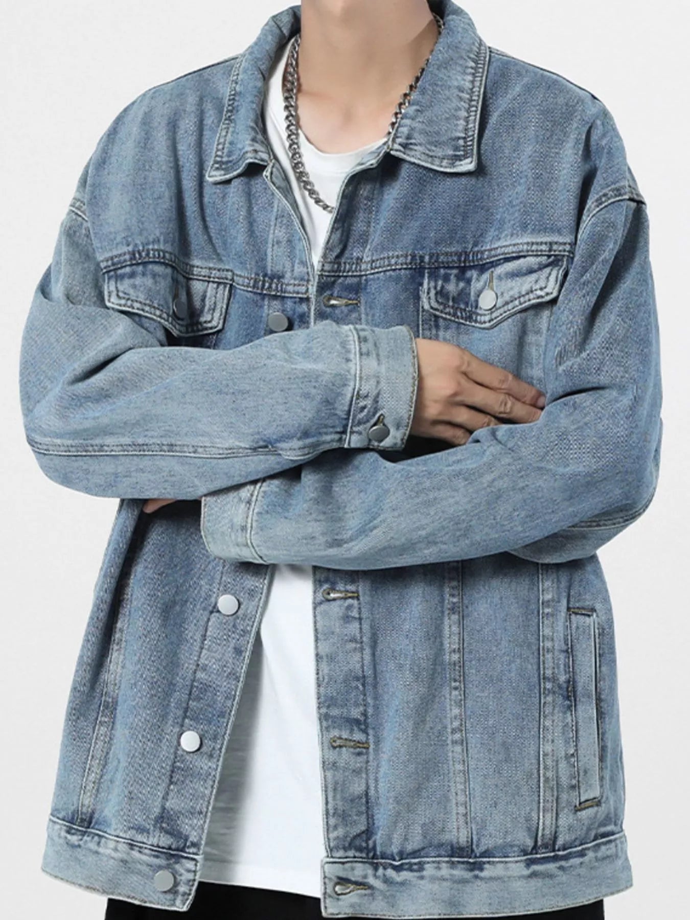 Men's Vintage Button Up Wash Denim Jacket