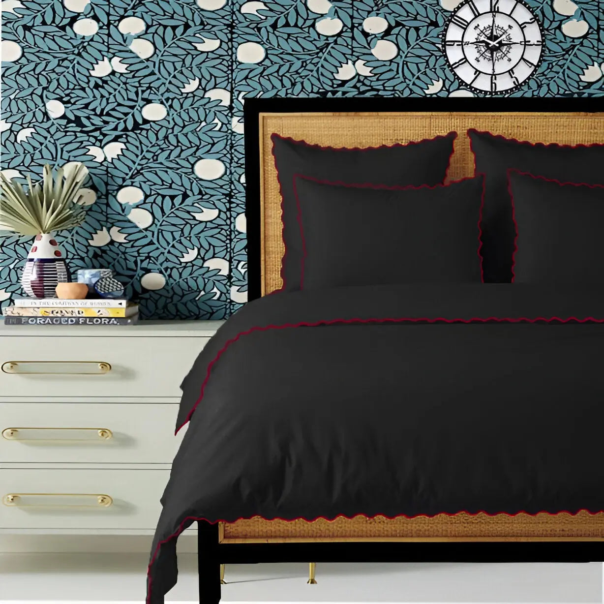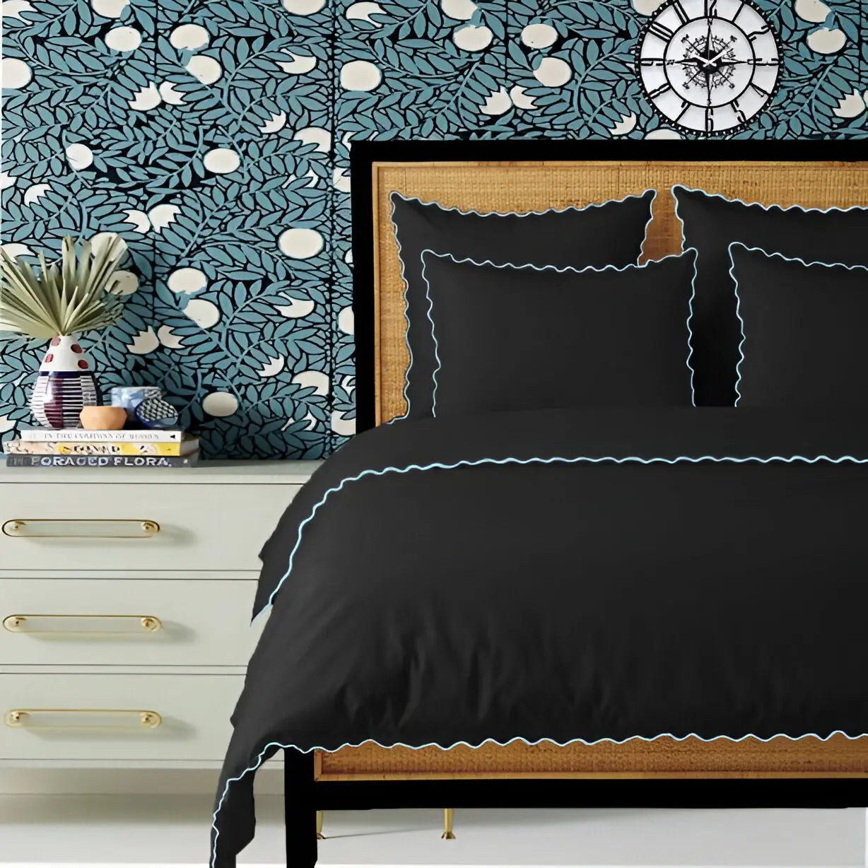 Black 400TC Cotton Small Scallop Embroidery Duvet Cover Set PushpLinen
