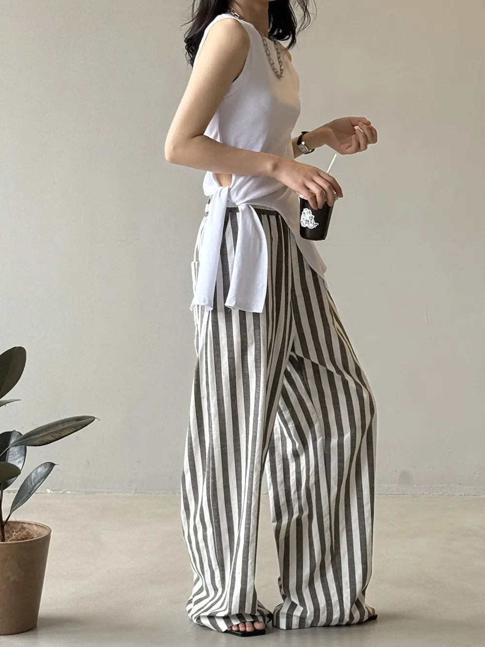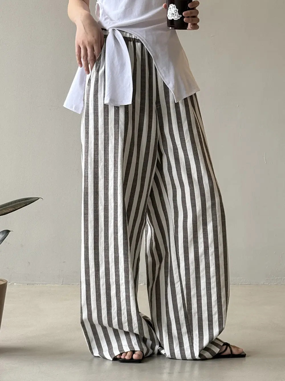 Elevate your wardrobe with our Striped Casual High Waist Wide Leg Trousers. These sophisticated trousers feature a high waist for a flattering fit and wide legs for a chic and comfortable look. The striped pattern adds a touch of elegance to any outfit. Perfect for any occasion, these trousers are a must-have for any fashion-forward woman.