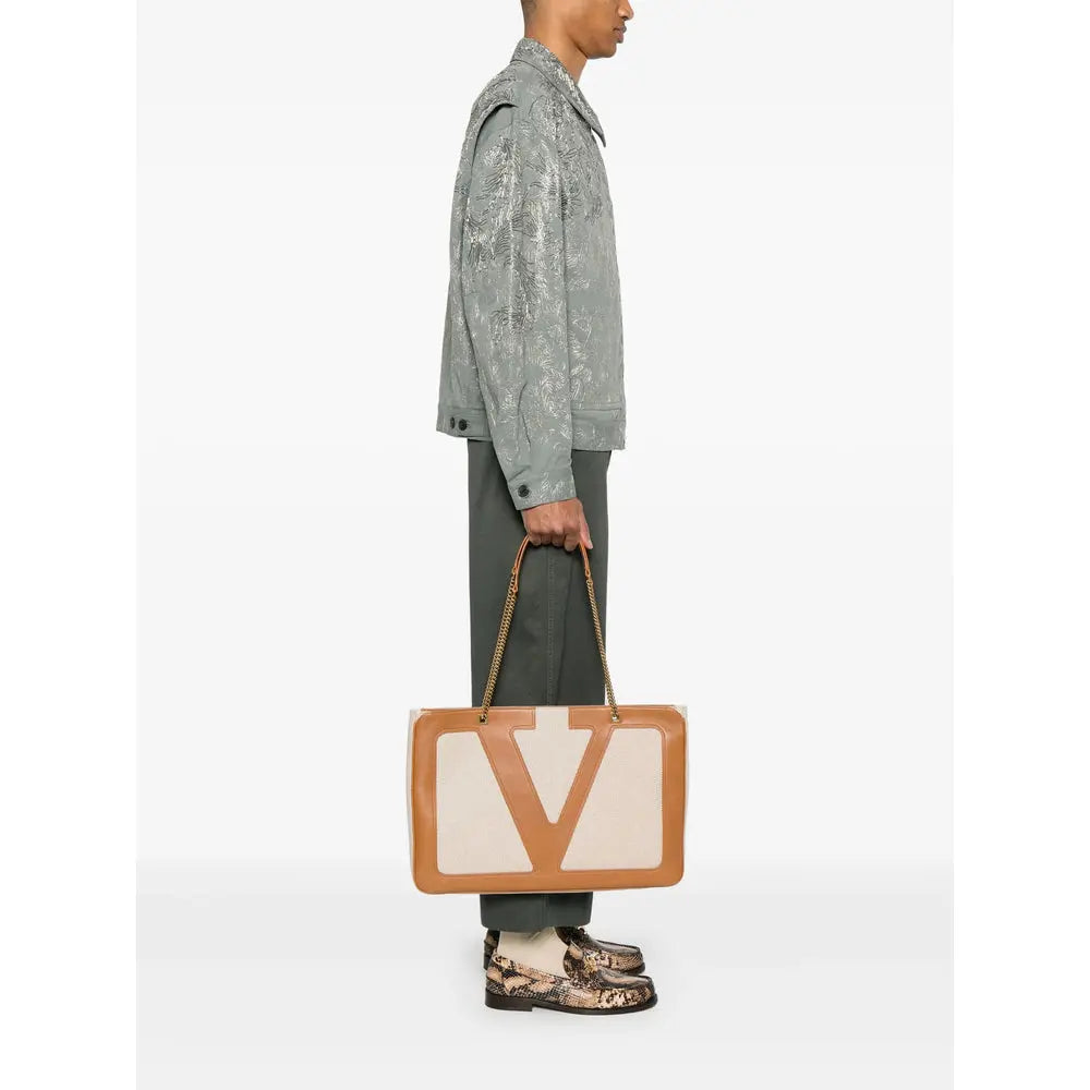通常価格 $1,506.00 USDsugar brown concealed top-zip fastening two leather and chain-link shoulder straps maxi VLogo Signature gold-tone hardware