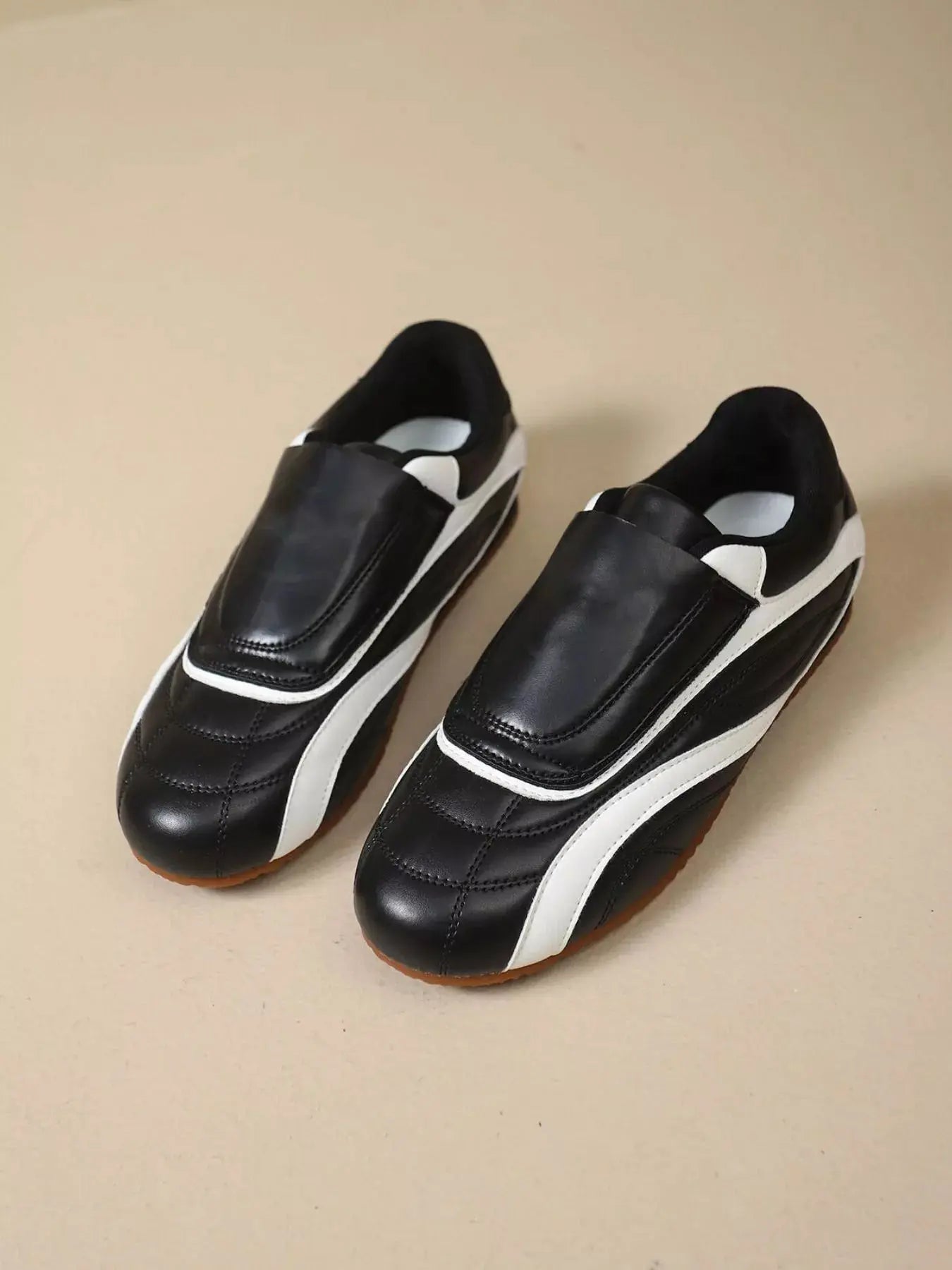 Contrast Round Toe Sneakers - Plush Fashion Hub