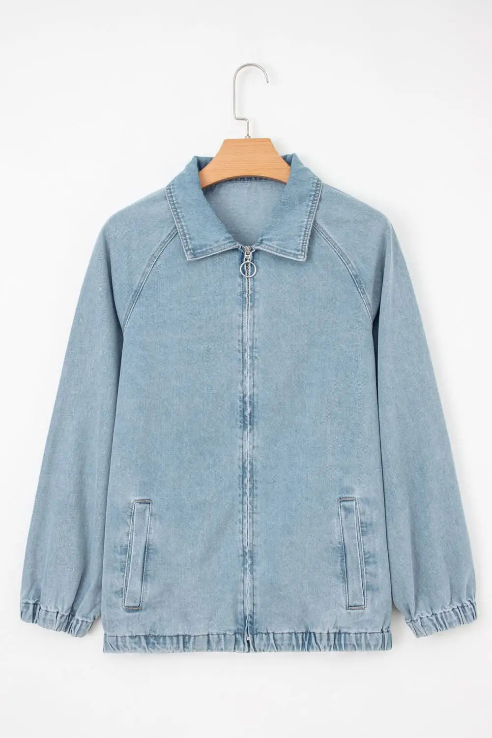 Myosotis Denim Jacket Zip Up With Elastic Hem Raglan Sleeves