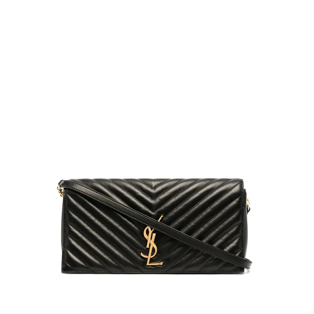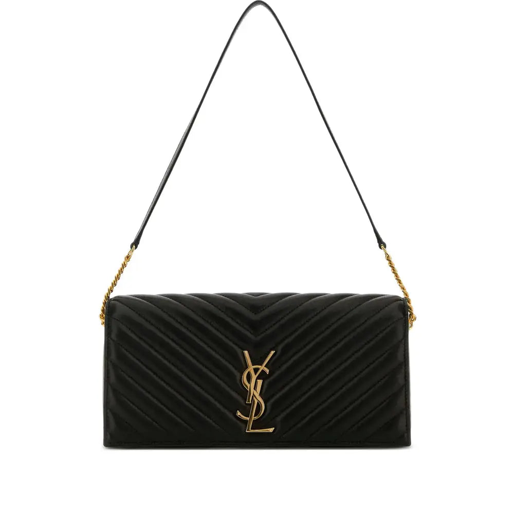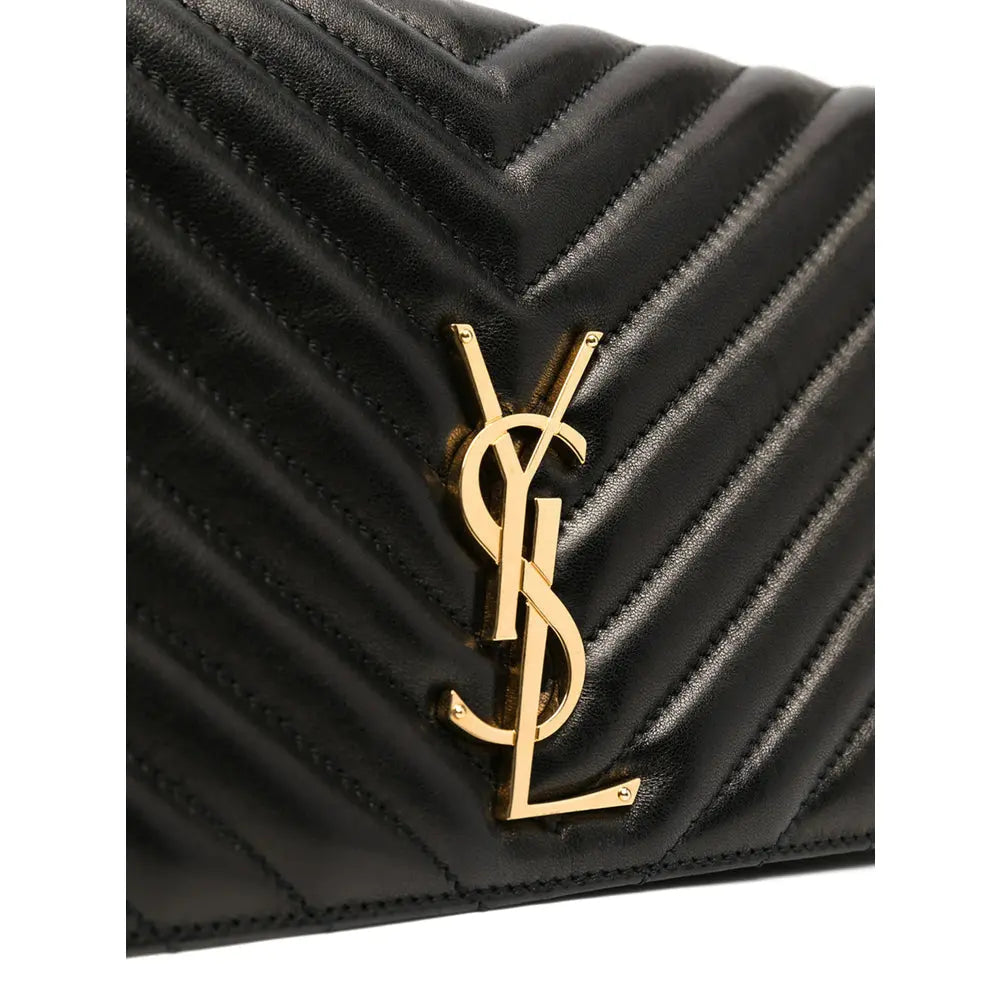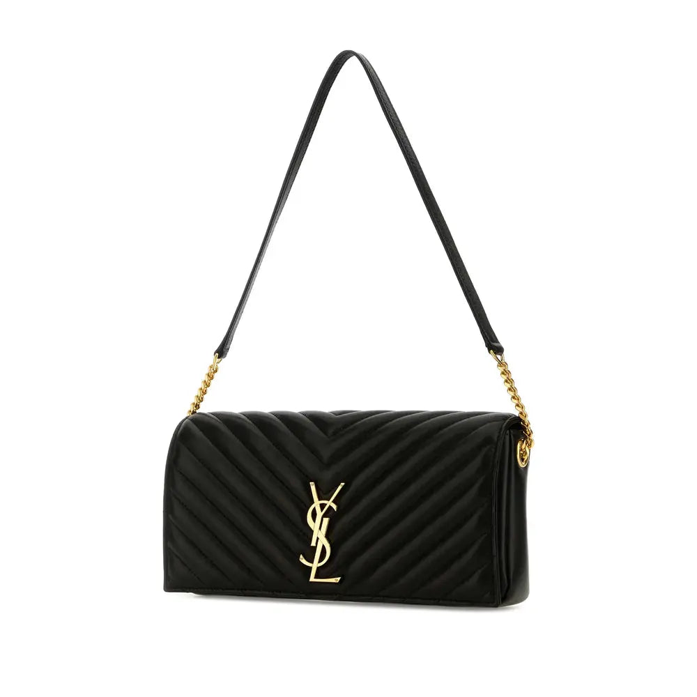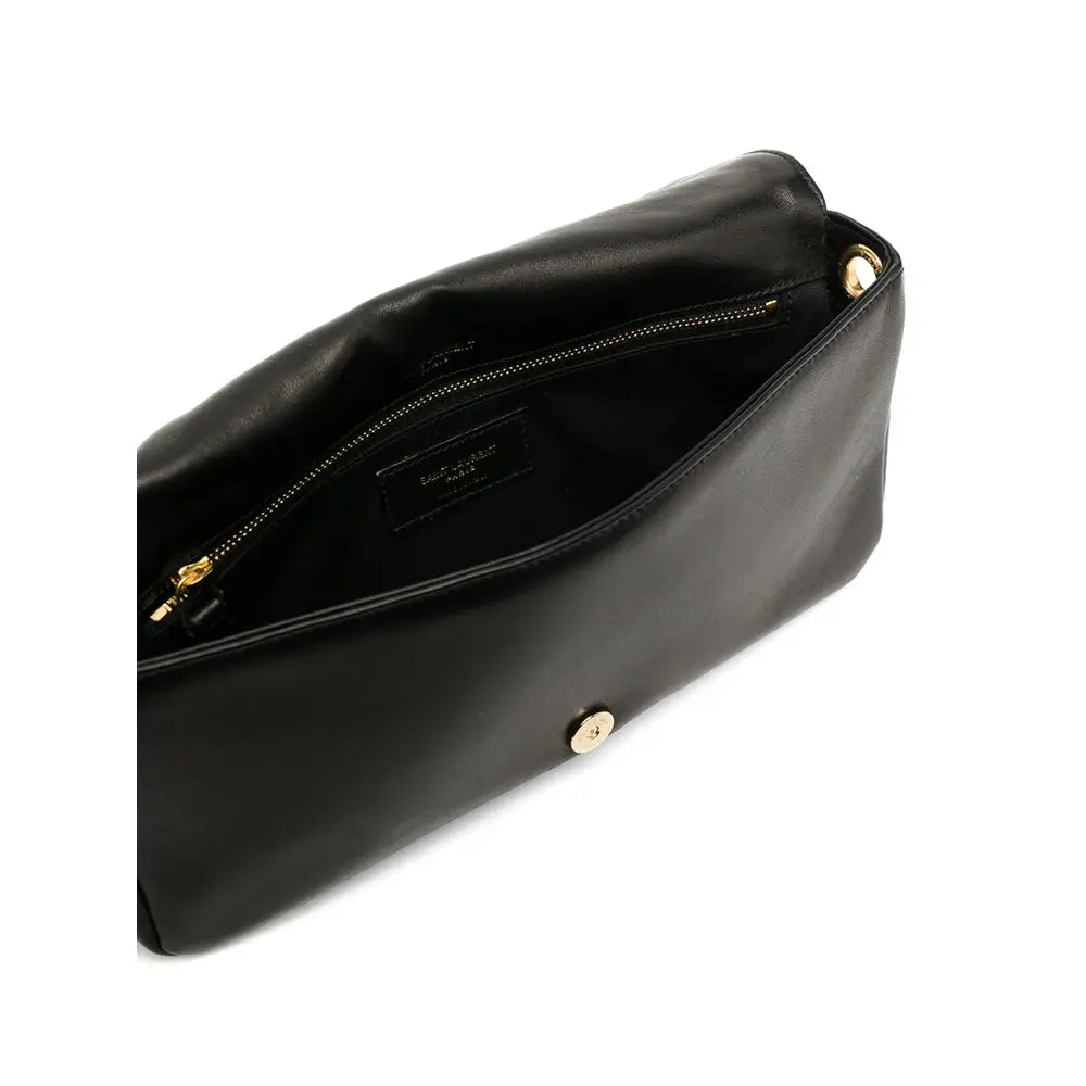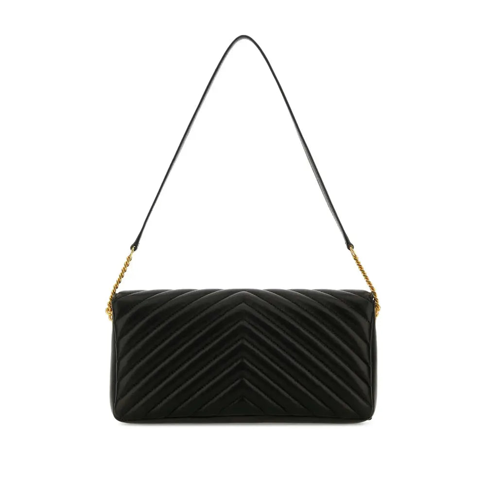 Regular price $1,768.00 USDblack lambskin adjustable detachable shoulder strap chain-link shoulder strap gold-tone logo plaque foldover top with magnetic fastening internal zip pocket internal logo patch