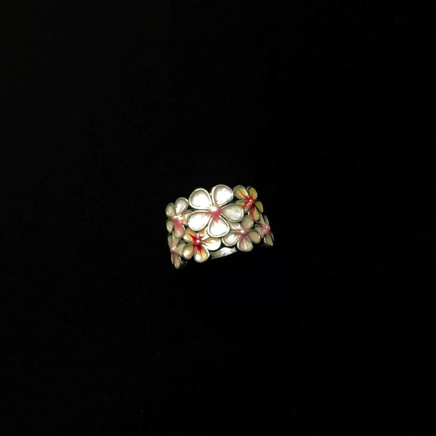 Add a pop of color with the Vintage Enamel Flower Ring, featuring vibrant enamel petals in a classic floral design. This ring brings a fresh, artistic vibe to any look, perfect for standout style with timeless appeal.