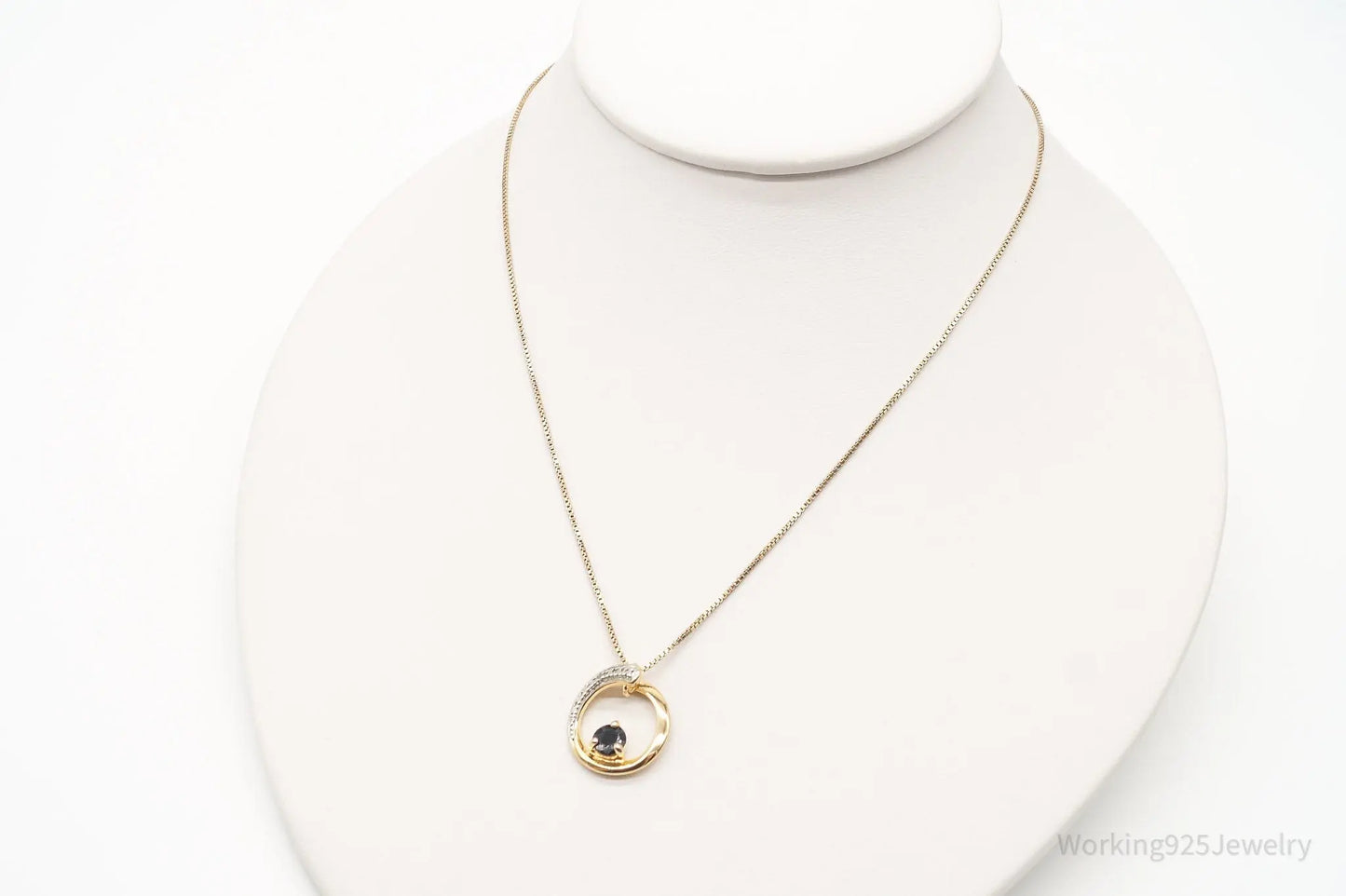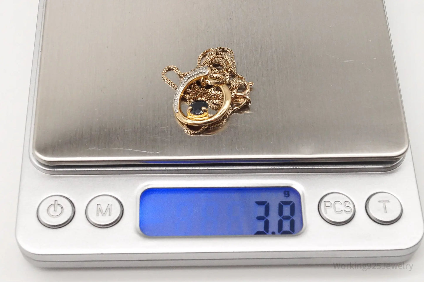 Designer Ross Simons Sapphires One Diamond Gold Vermeil Sterling Silver Necklace