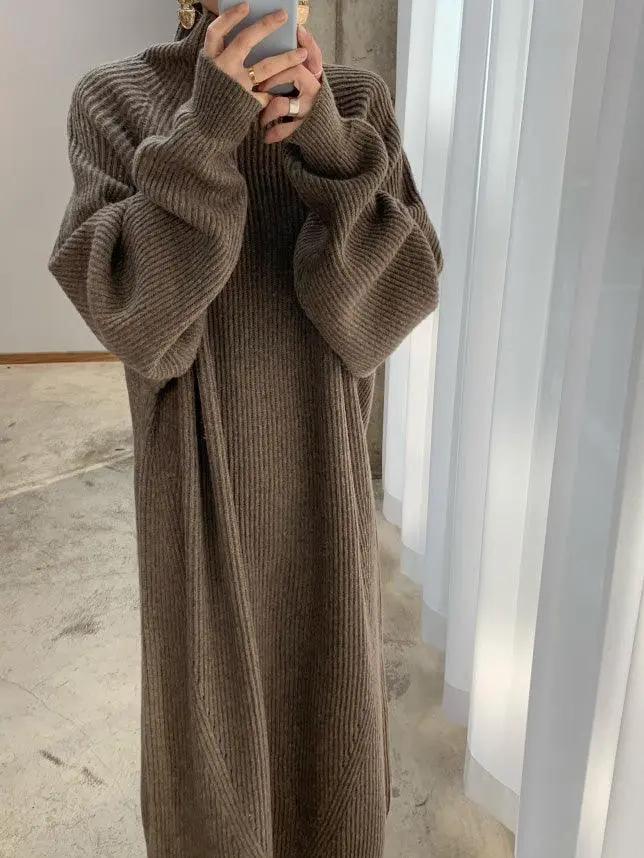 Casual High Neck Solid Color Long Sleeve Knit Dress Plush Fashion Hub