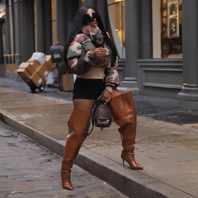 Autumn Winter Women Clothing Retro Camouflage Print Short Jacket Cotton Coat Perfecsy