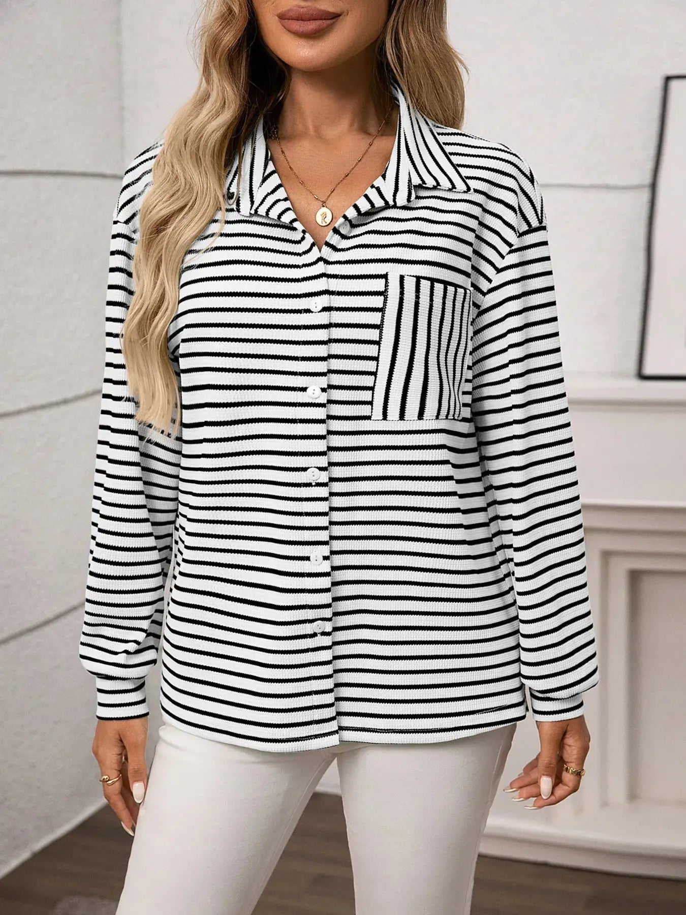 Striped Button Up Long Sleeve Shirt