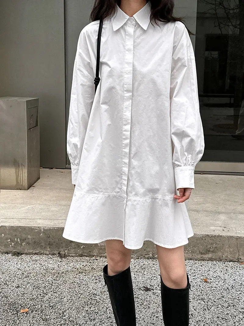 Elevate your wardrobe with this Simple Casual Hem Fishtail Shirt Dress. Featuring a refined fishtail hem, it offers a graceful silhouette that's both effortless and elegant. Crafted for comfort and style, this dress transitions seamlessly from day to night, making it a versatile addition to your collection. Perfect for a polished yet relaxed look.