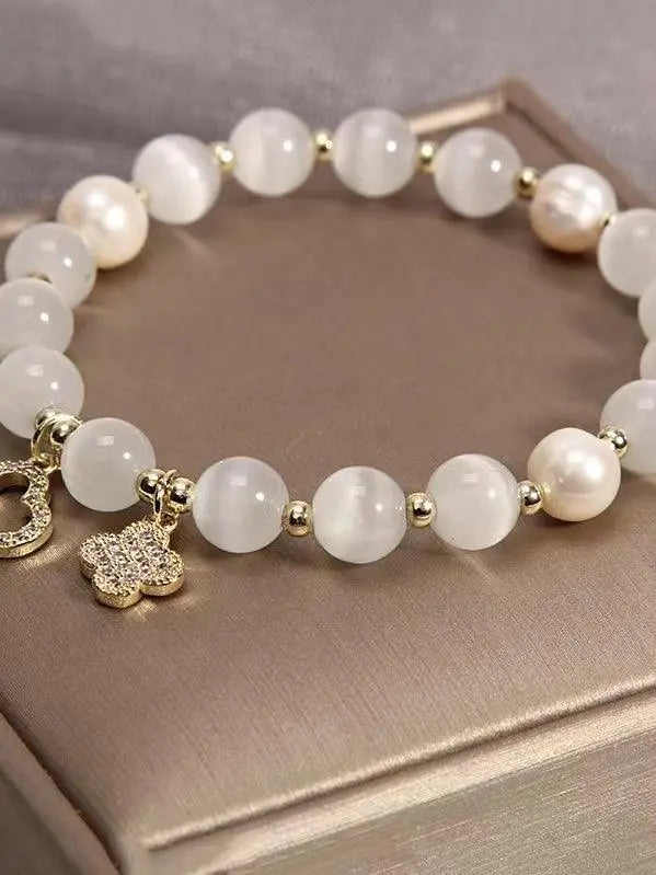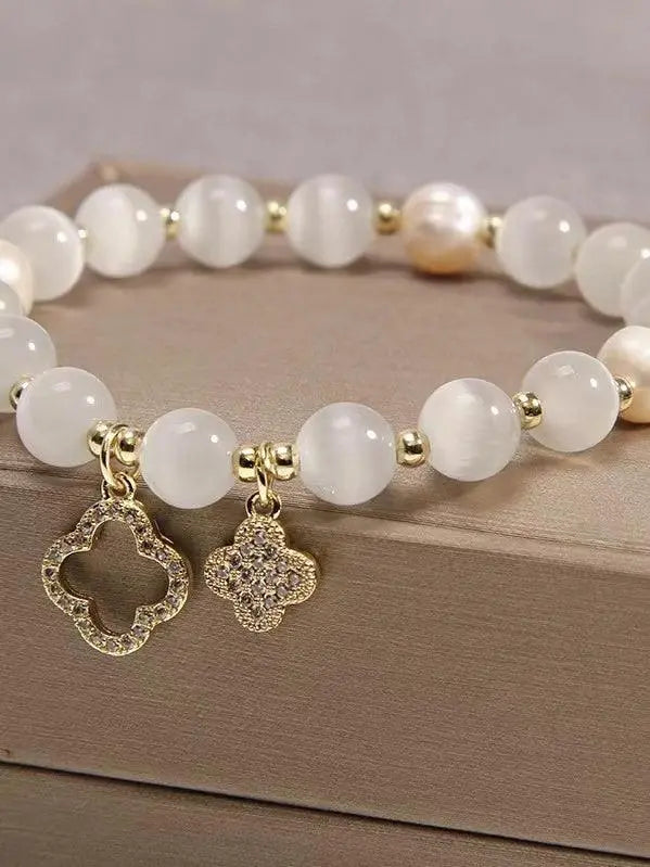 Clover White Opal Crystal Bracelet