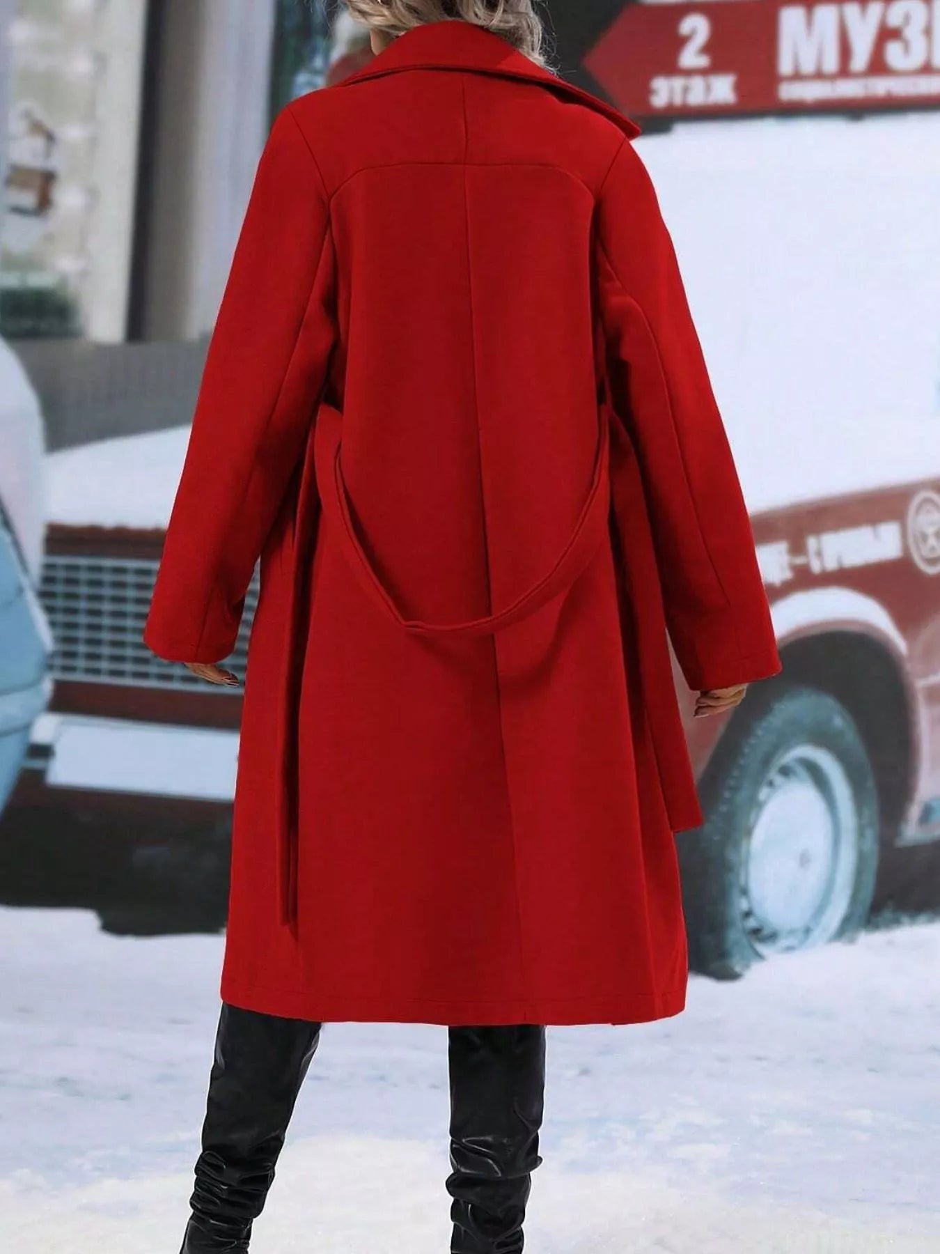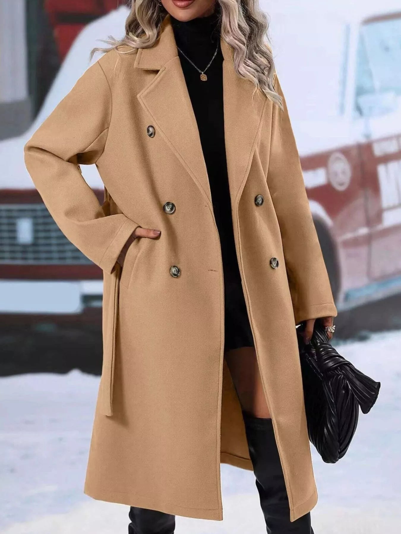 Double-Breasted Tie Waist Coat