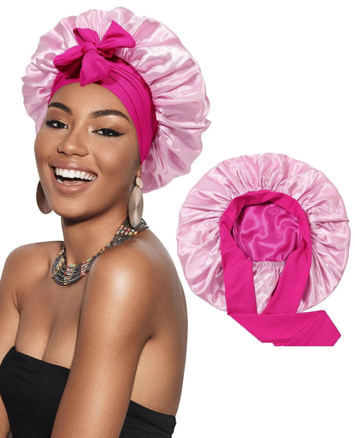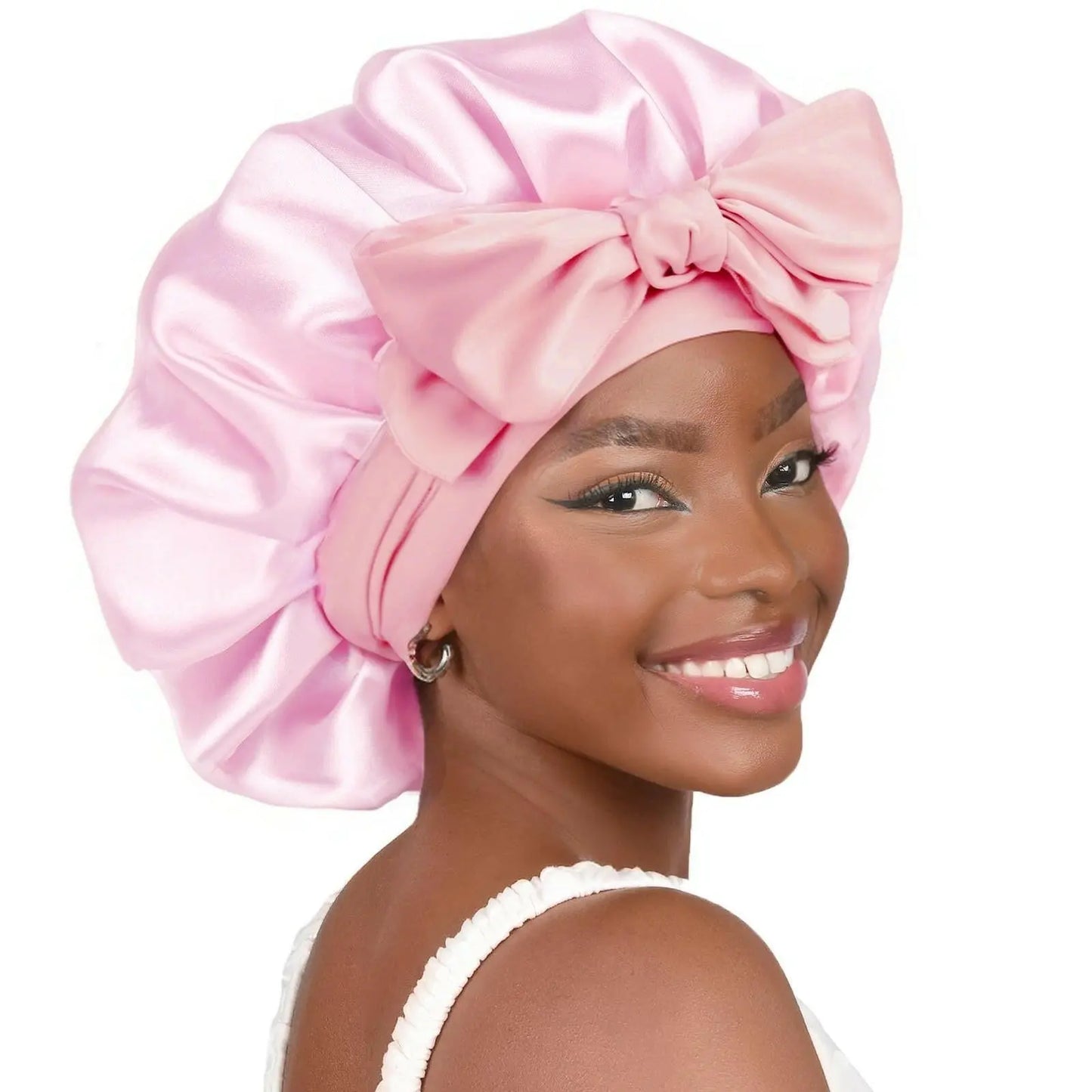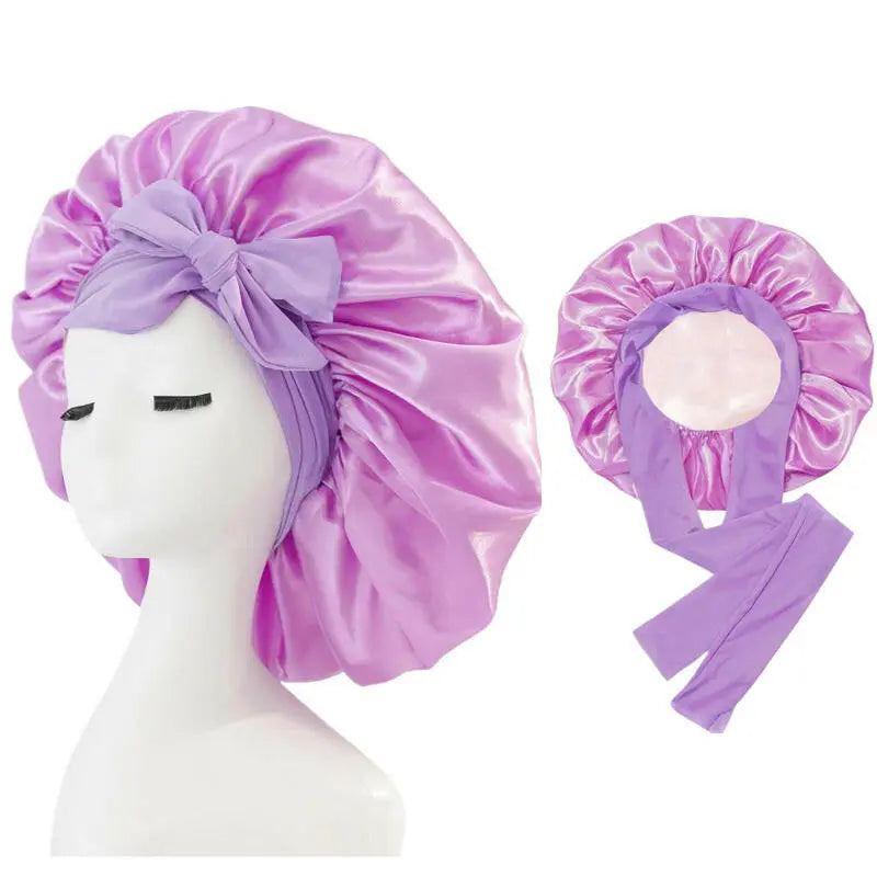 Double-layer Ribbon Round Hair Protectant Bow Hair Care Cap - Plush Fashion Hub