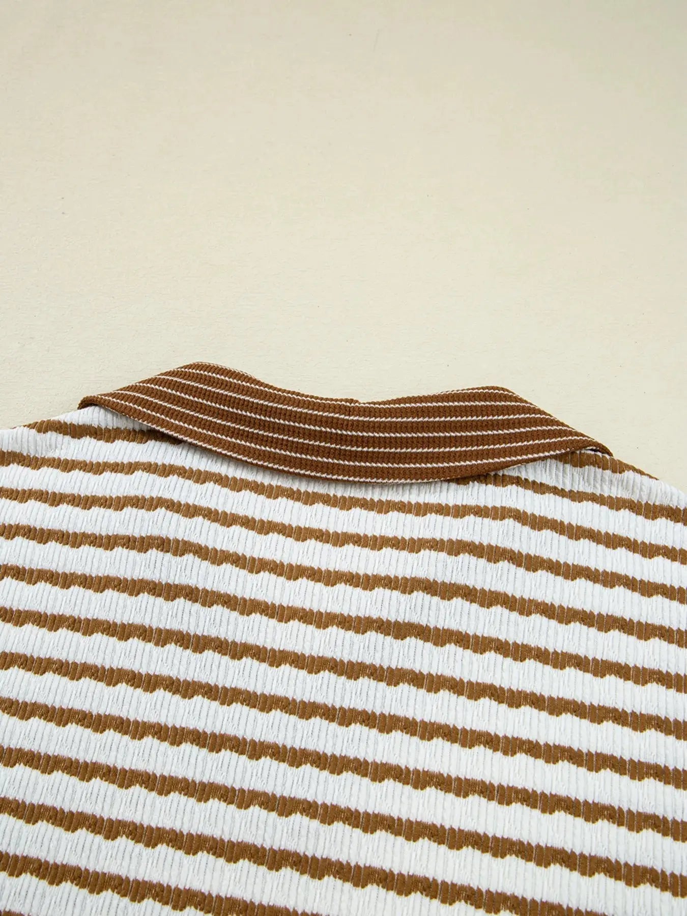 Stripe Collared Top and Drawstring Pant Set - Plush Fashion Hub