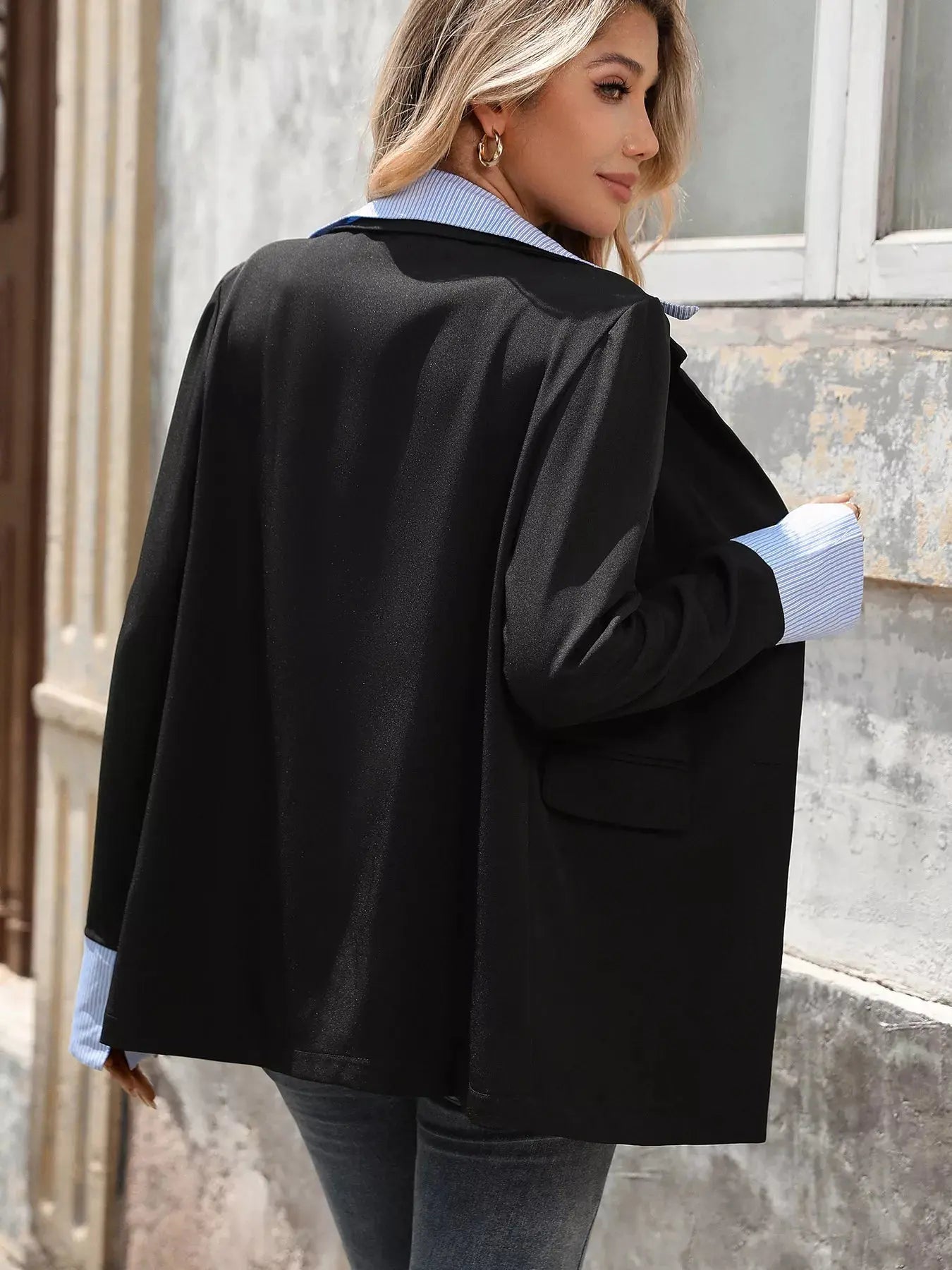Striped Collar Long Sleeve Fake Two-Piece Blazer - Plush Fashion Hub